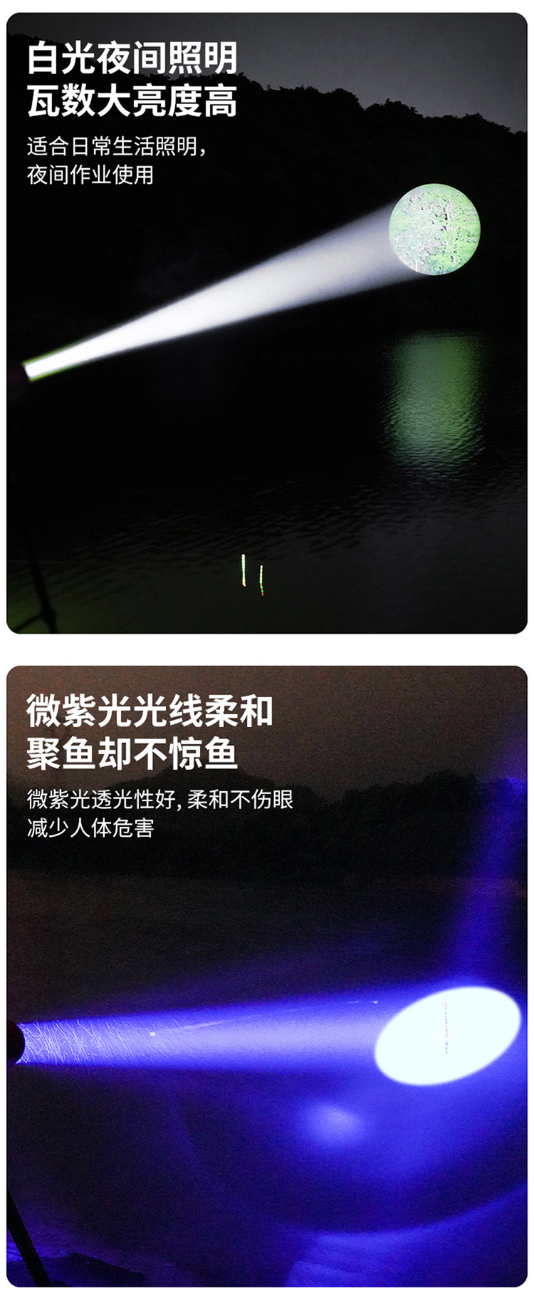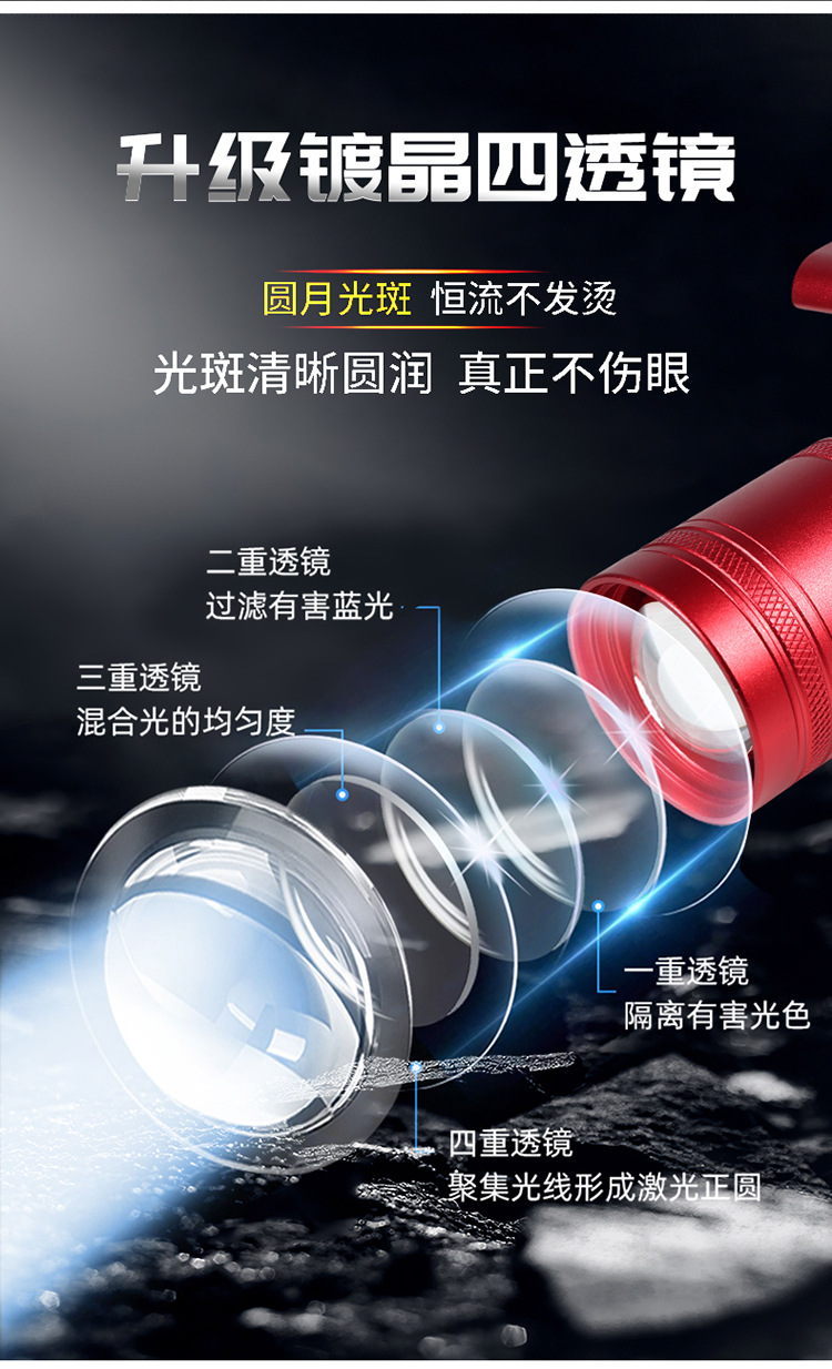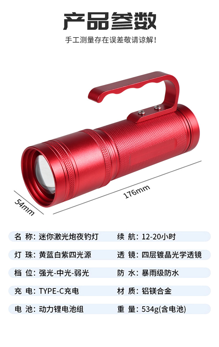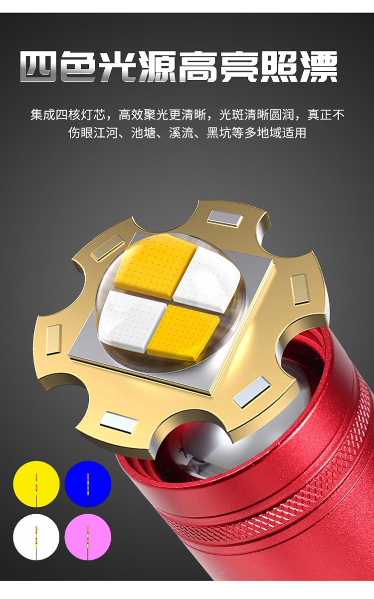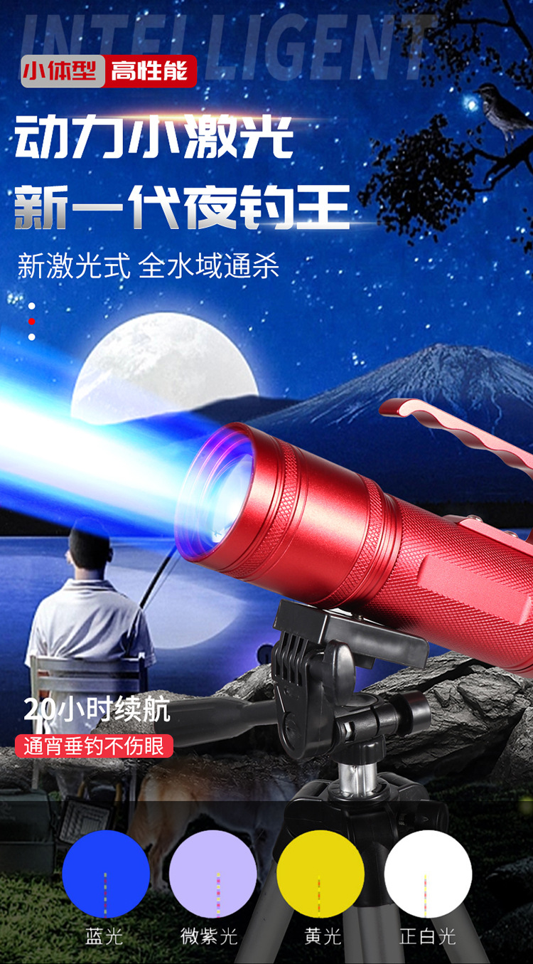 Lampu pancing luar ruangan Super terang multifungsi lampu kuat lampu pancing malam laser kecil empat sumber cahaya senter lubang hitam grosir