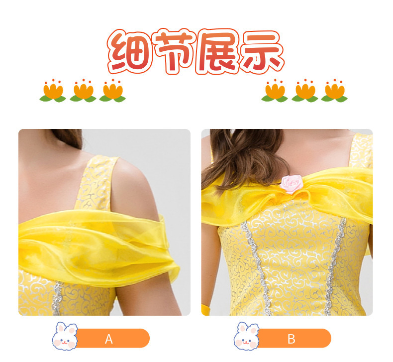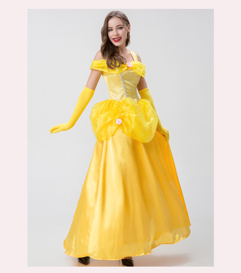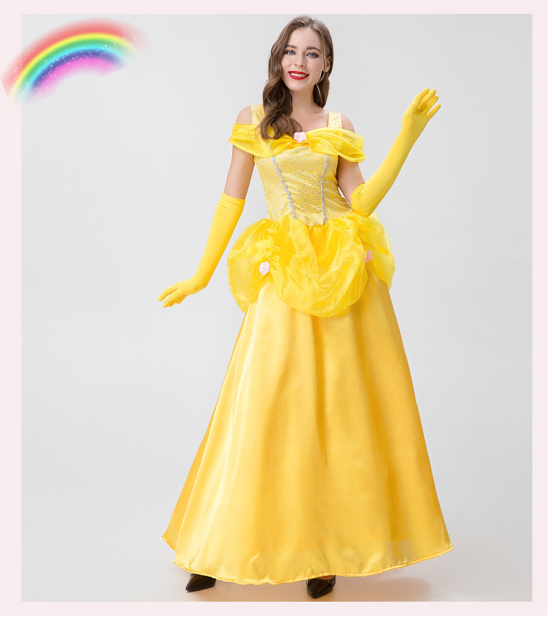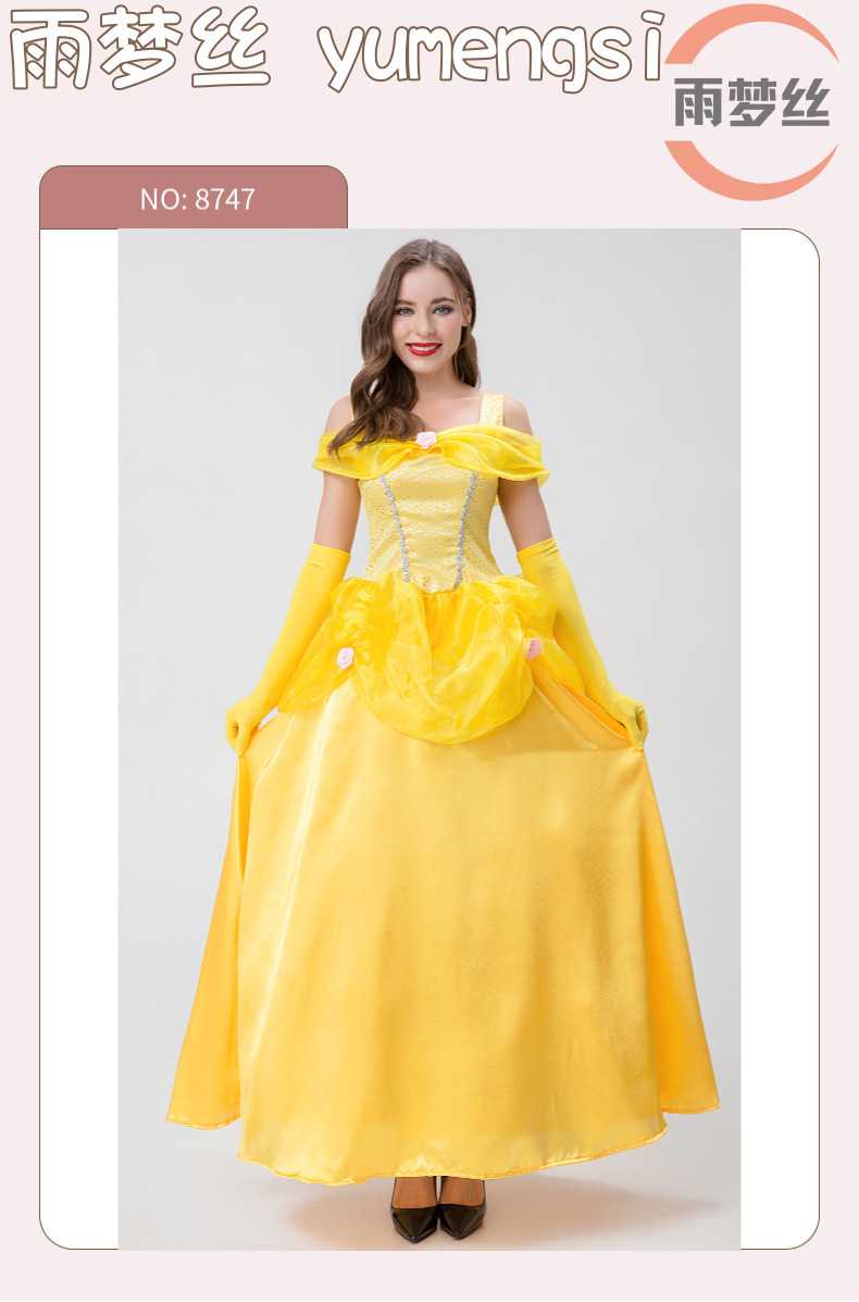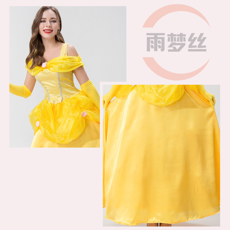 Gaun princess Bell Belle kostum cosplay dewasa, kostum Halloween film dan televisi versi langsung Kecantikan dan monster