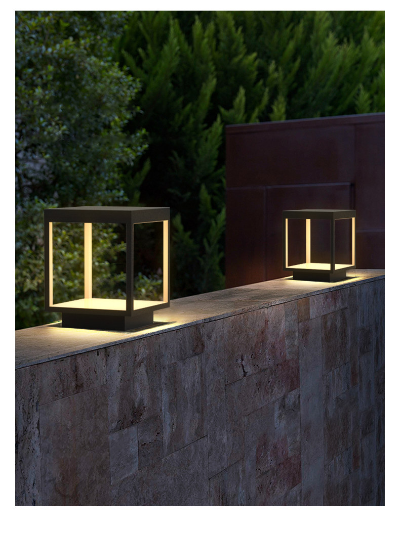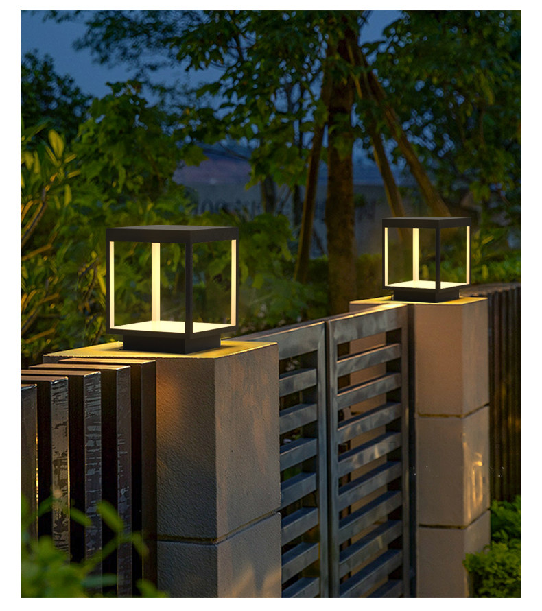 Lampu kepala tiang luar ruangan tenaga surya, lampu lanskap taman sederhana, lampu pagar luar ruangan, lampu tiang gerbang, lampu surya, tahan air.