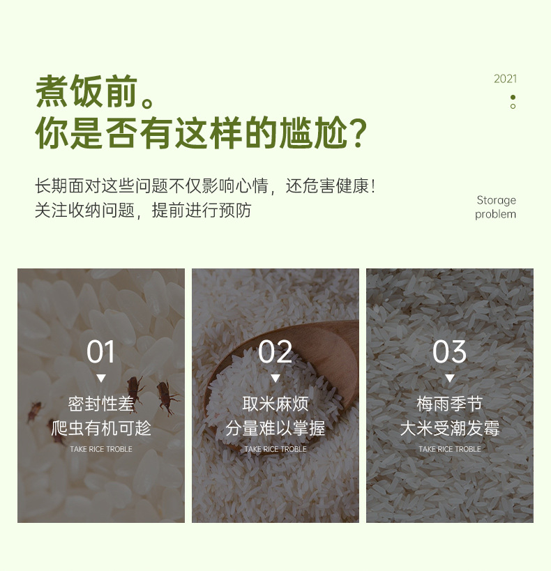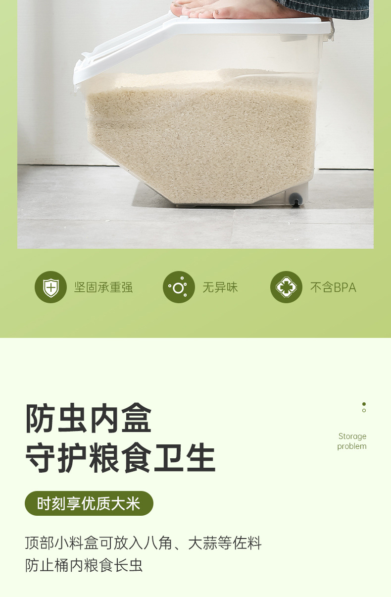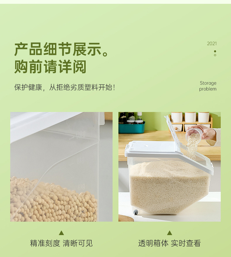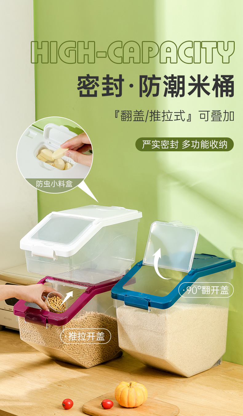 Kotak penyimpanan beras, ember beras rumah tangga tersegel serangga, anti lembab, kotak penyimpanan gandum, tepung, beras, kapasitas besar