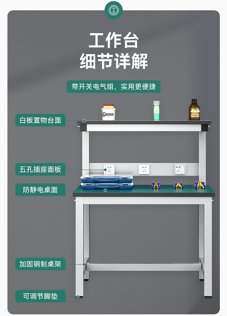 Meja percobaan ponsel bengkel, meja perbaikan ponsel meja percobaan deteksi meja operasi perakitan lapisan ganda dengan soket lampu