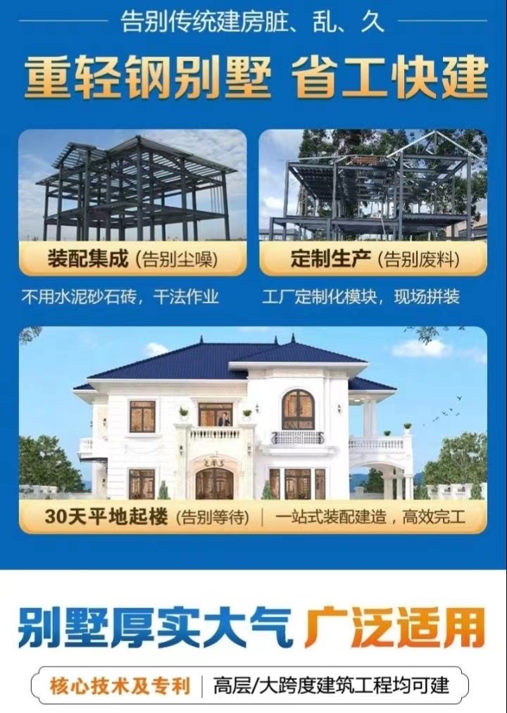 Produsen rumah struktur baja ringan terintegrasi Vila baja terintegrasi rumah tangga mandiri rural