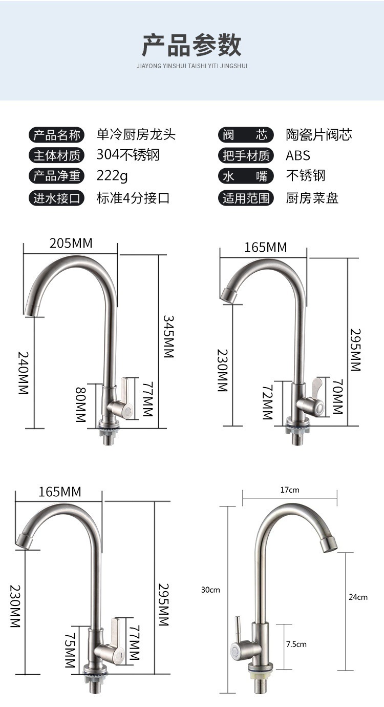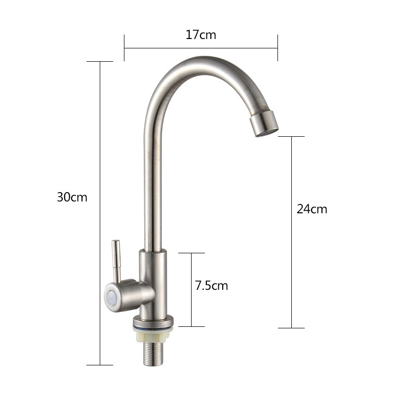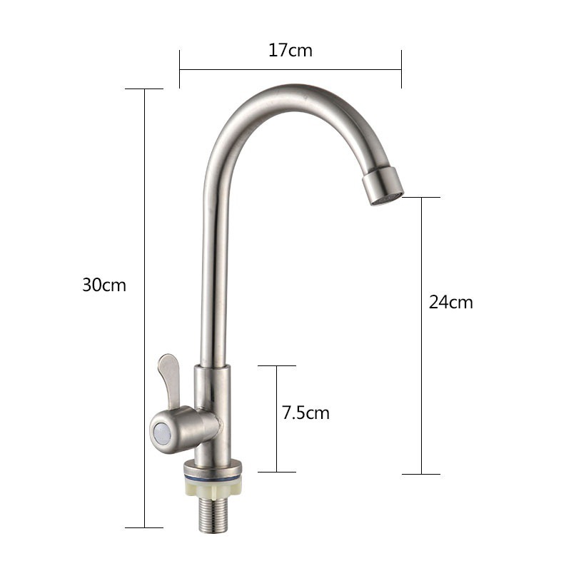 Keran dingin tunggal dapur 304 baja tahan karat wastafel baskom sayur keran kamar mandi bola dapat diputar pabrik grosir