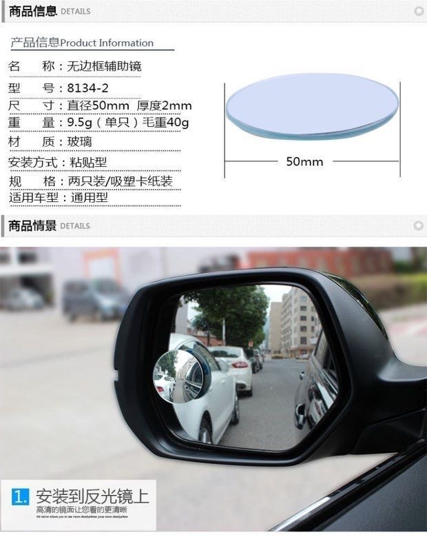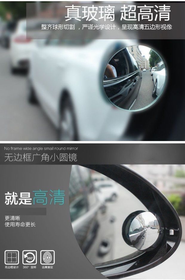 Cermin spion HD mulus 360, kaca spion titik buta dapat disesuaikan, kaca bulat kecil mundur sudut lebar mobil