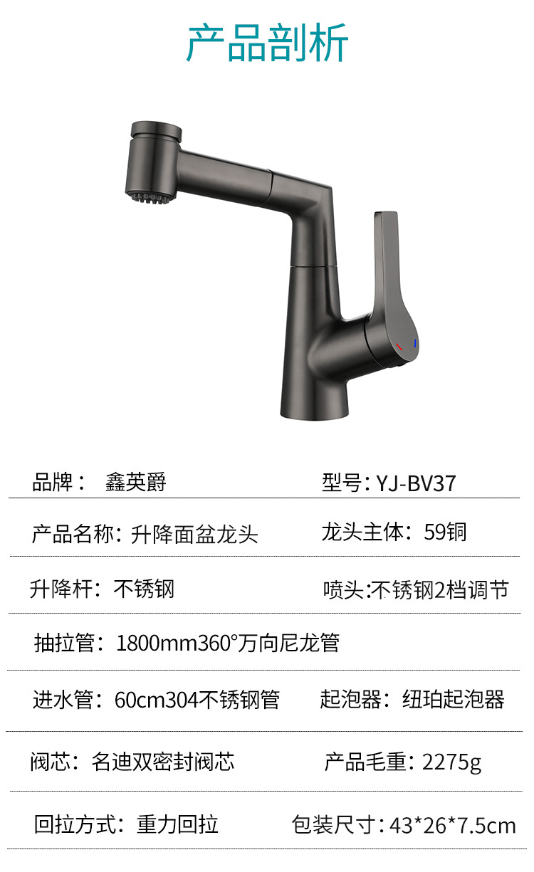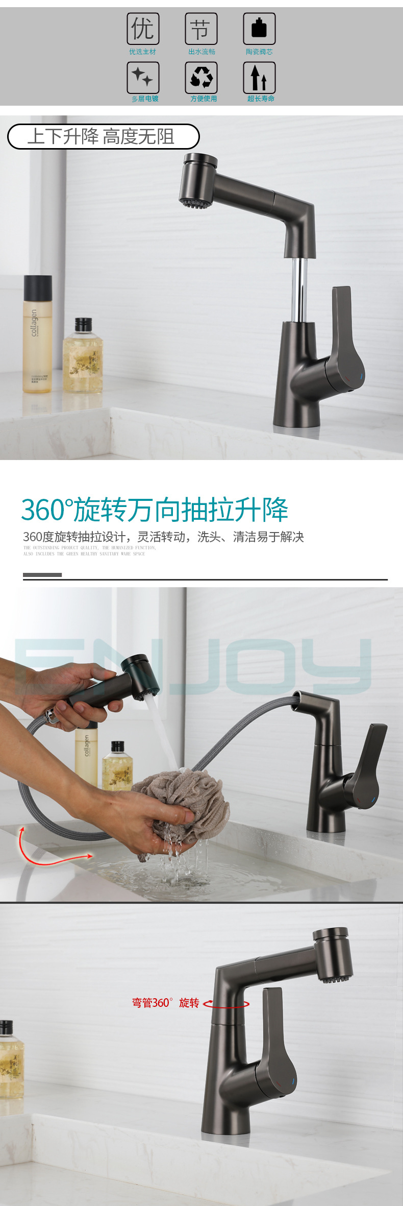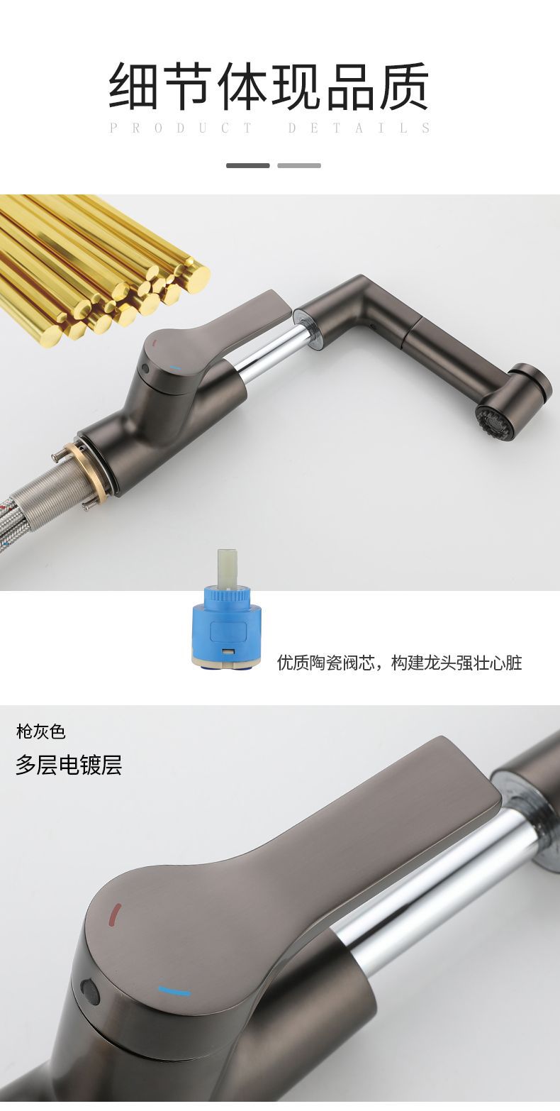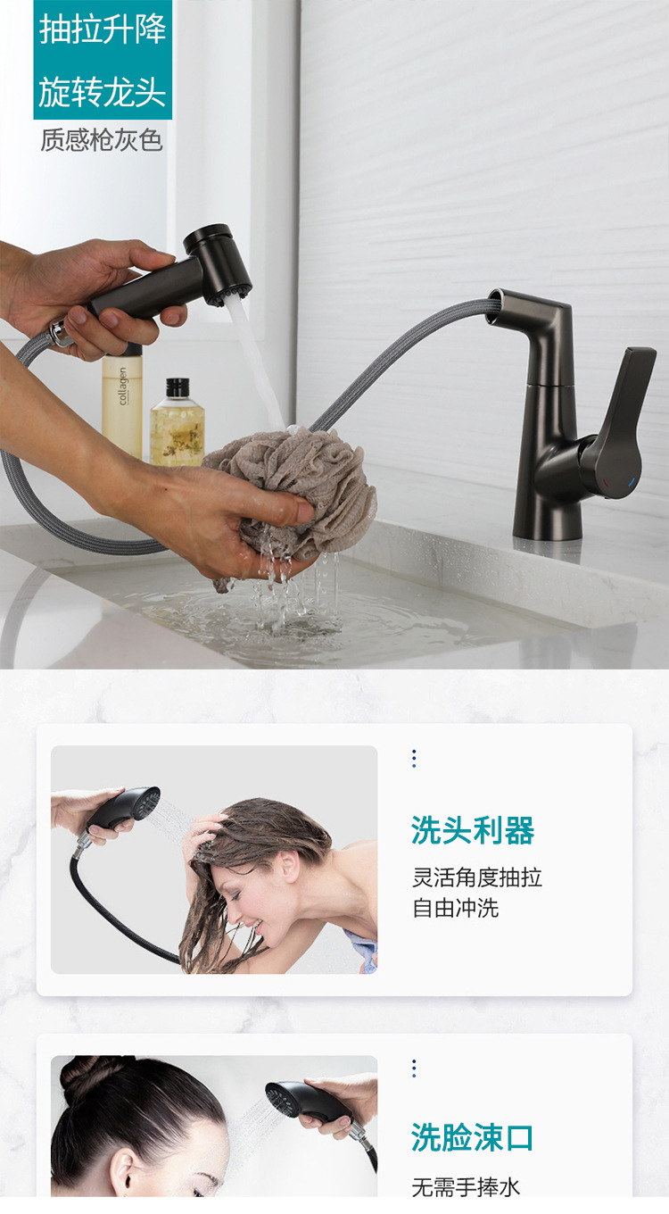 全铜叮当升降抽拉面盆水龙头洗漱上喷水卫生间台盆洗手盆阳台龙头