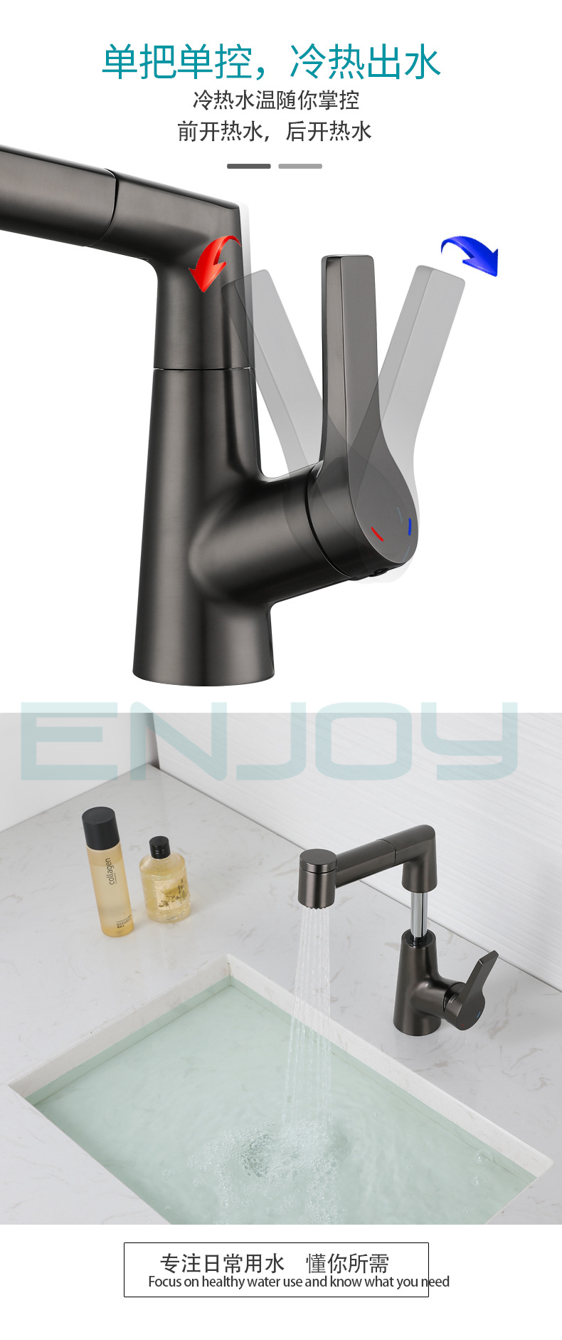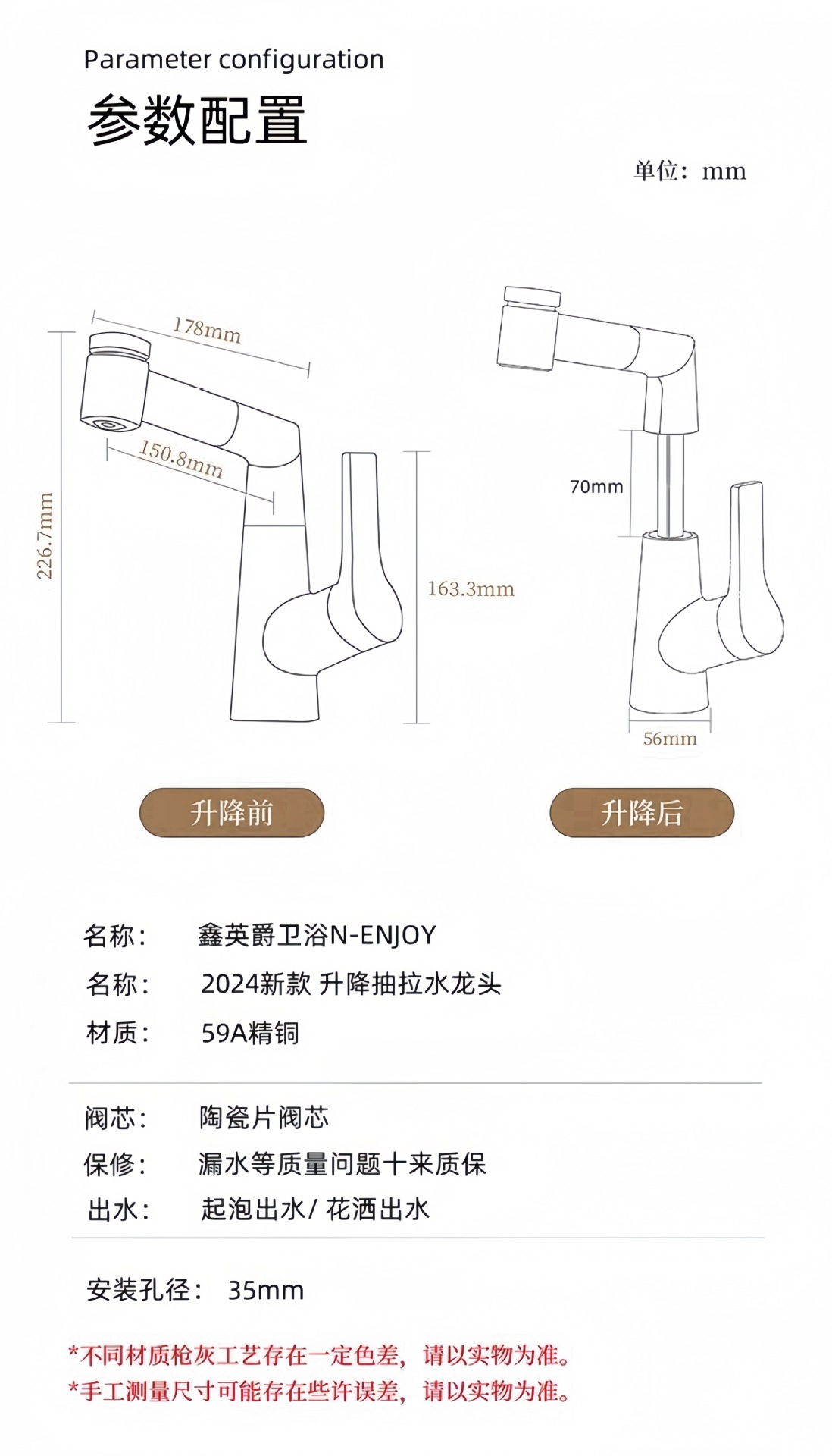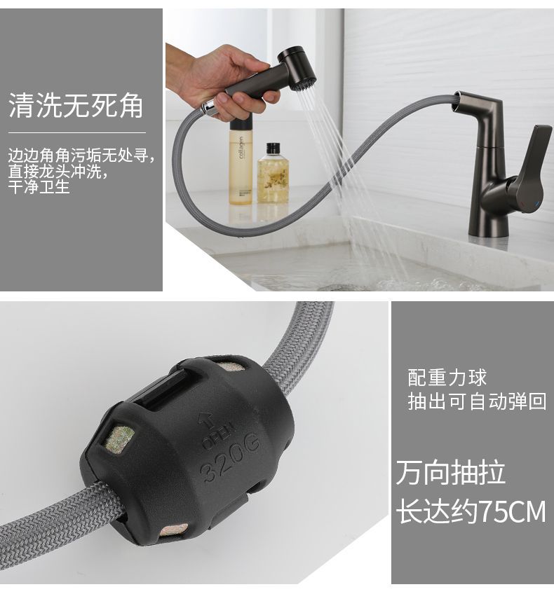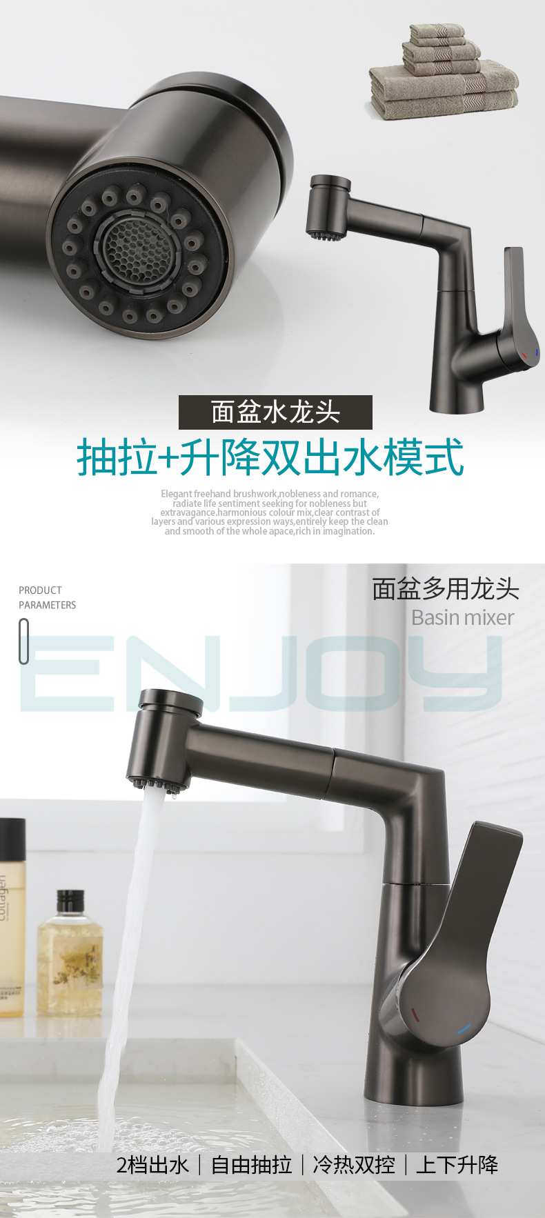 全铜叮当升降抽拉面盆水龙头洗漱上喷水卫生间台盆洗手盆阳台龙头