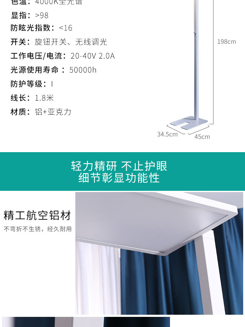 Purui lampu lantai membaca dan belajar ruang tamu ruang belajar kamar tidur anak-anak LED spektrum penuh pelindung mata lampu jalan besar