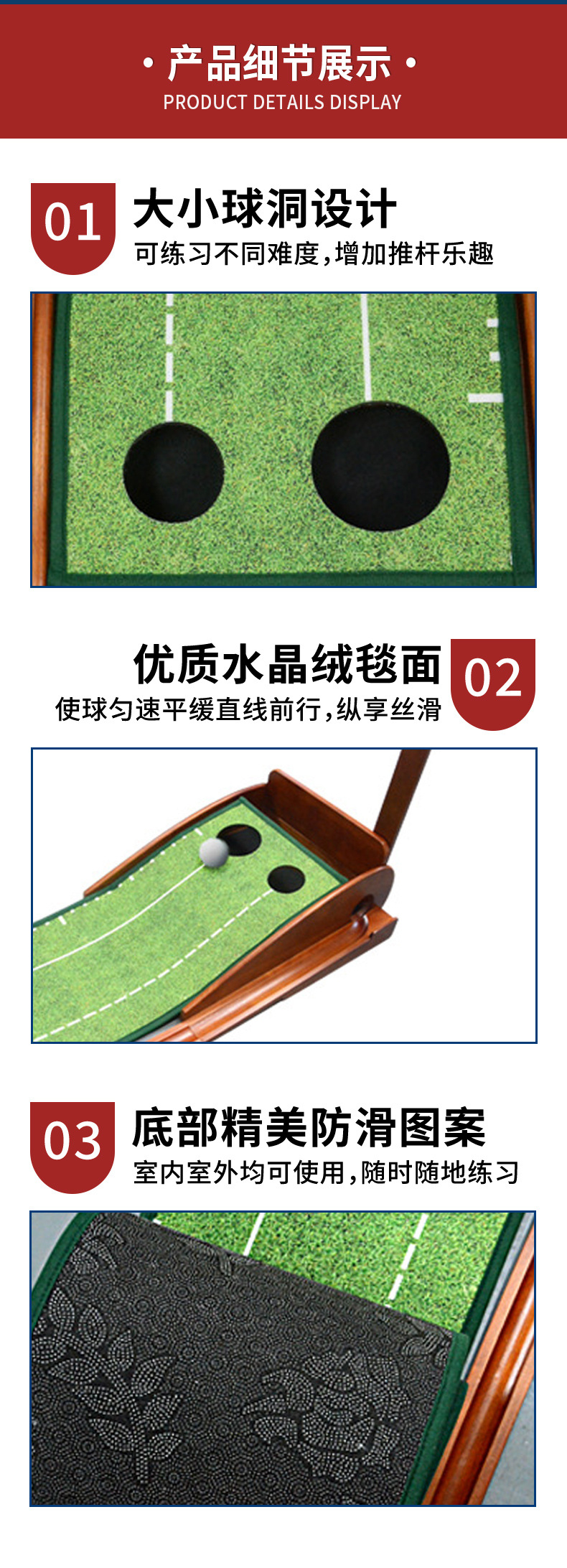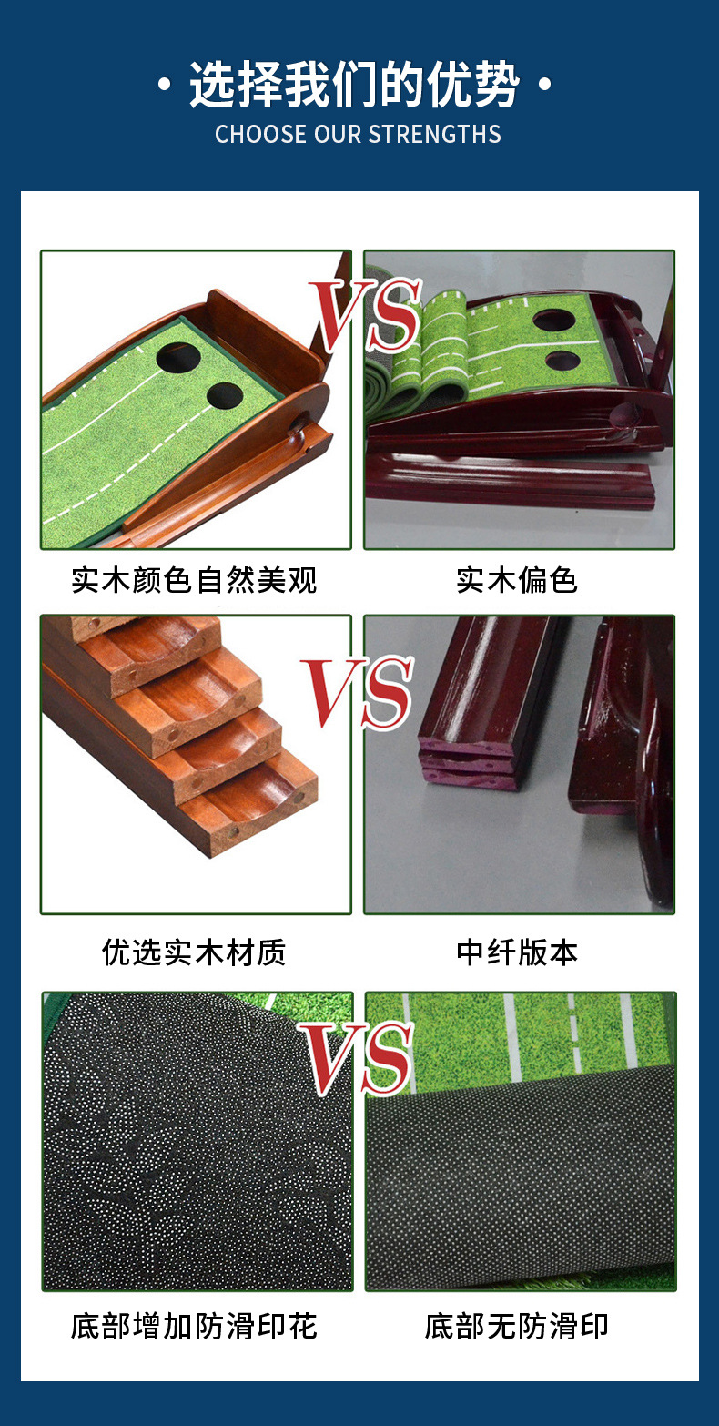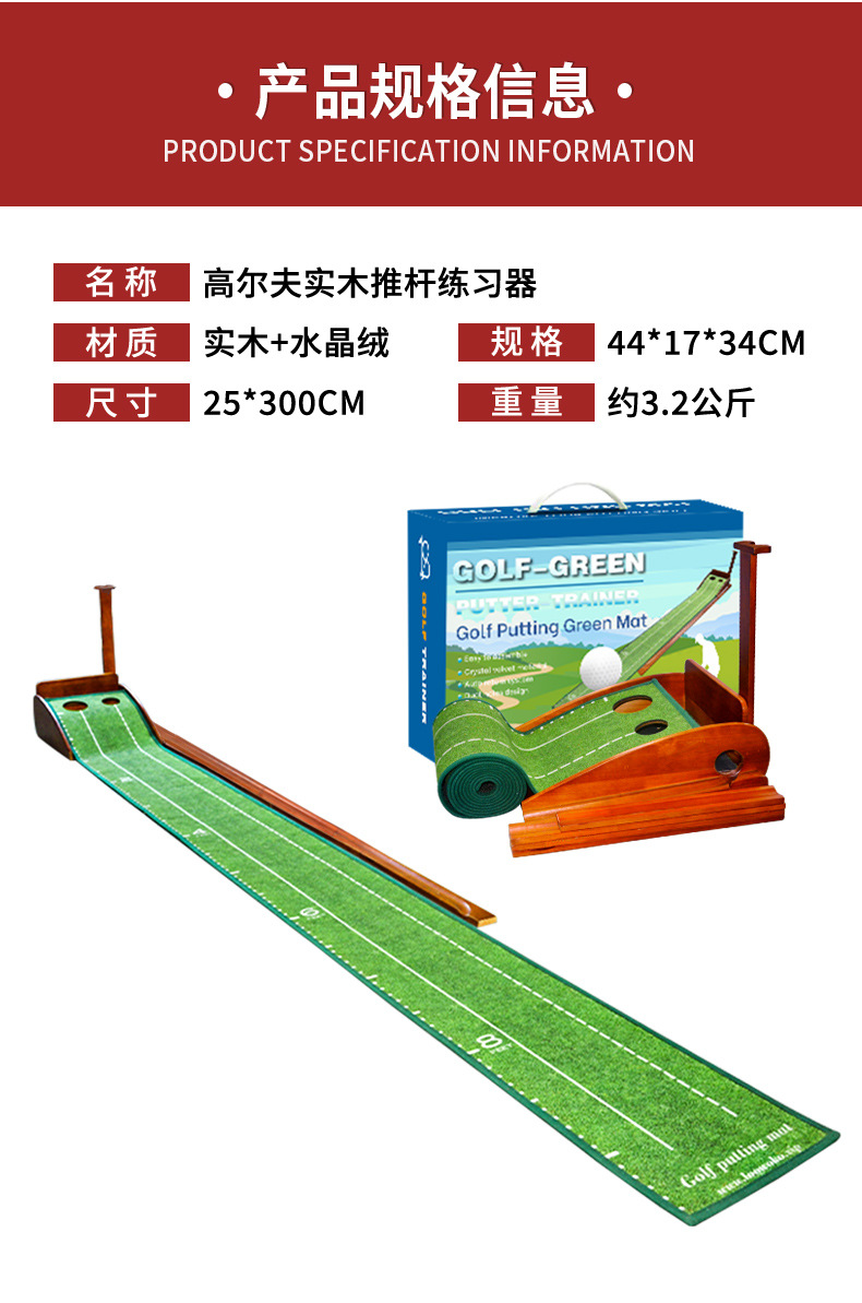 Perlengkapan golf indoor grosir pabrik, alat latihan putting kayu solid, pelatih golf, selimut latihan beludru kristal