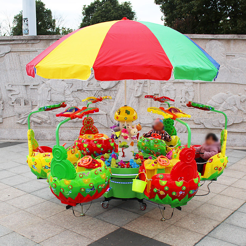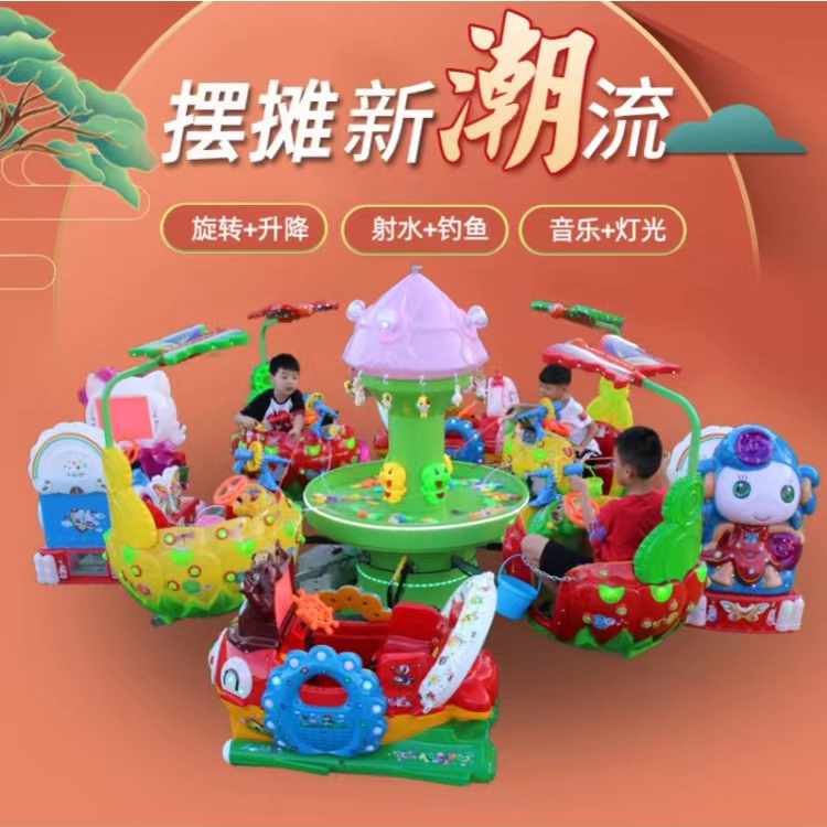 Taman kios persegi anak-anak berputar listrik ikan terbang kecil kupu-kupu cinta bunga menembak air mesin pancing berputar pesawat angkat
