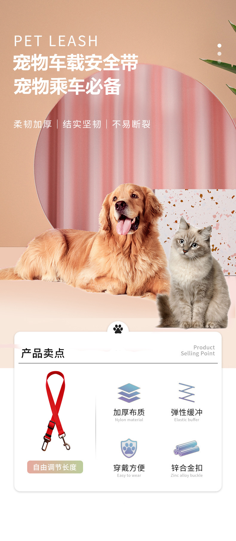 Tali sabuk kursi mobil, perlengkapan hewan peliharaan tali anjing kucing besar sedang kecil tali dapat disesuaikan