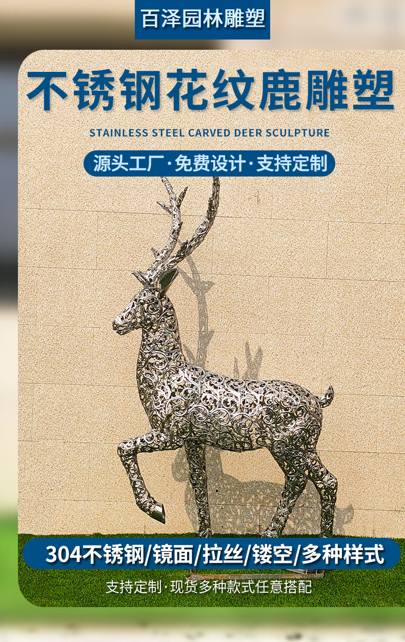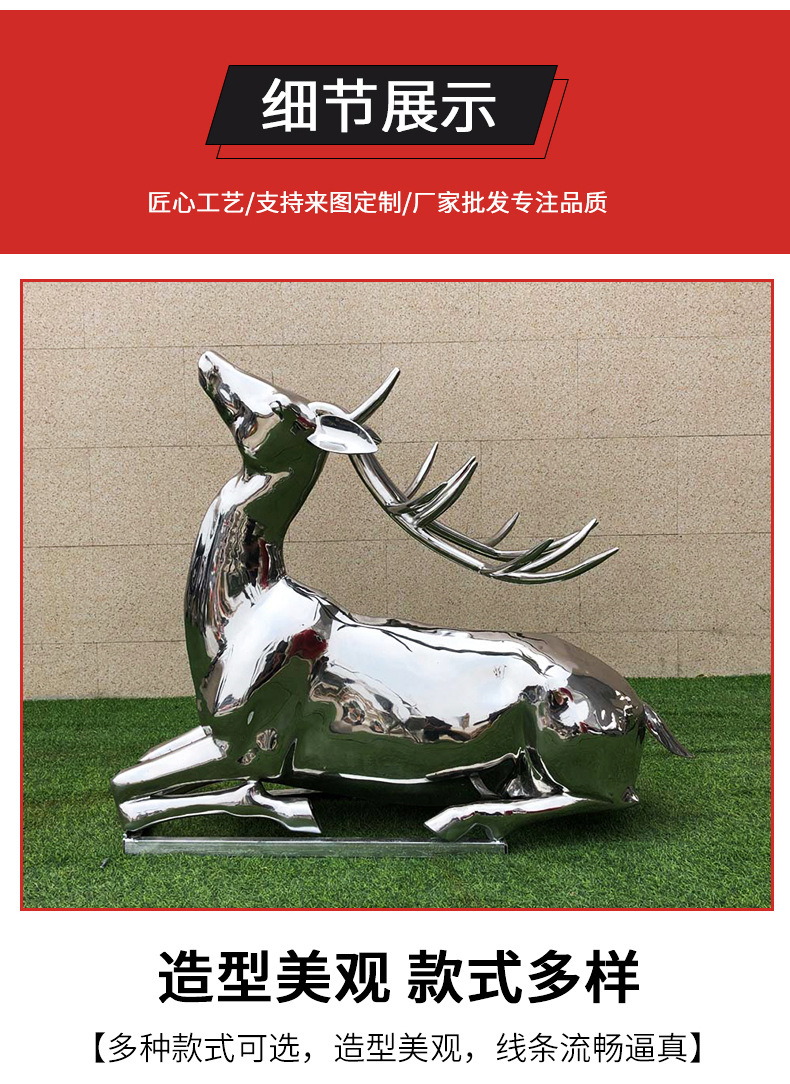 Stainless Steel Berongga Patung Taman Outdoor Pabrik Patung Lansekap Geometri Gambar Hewan Stainless Steel Patung Rusa