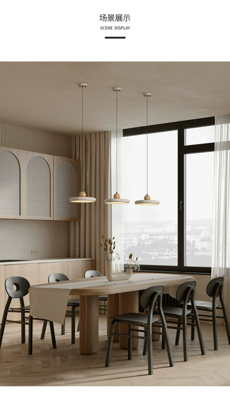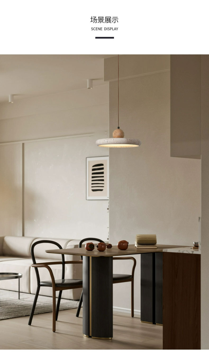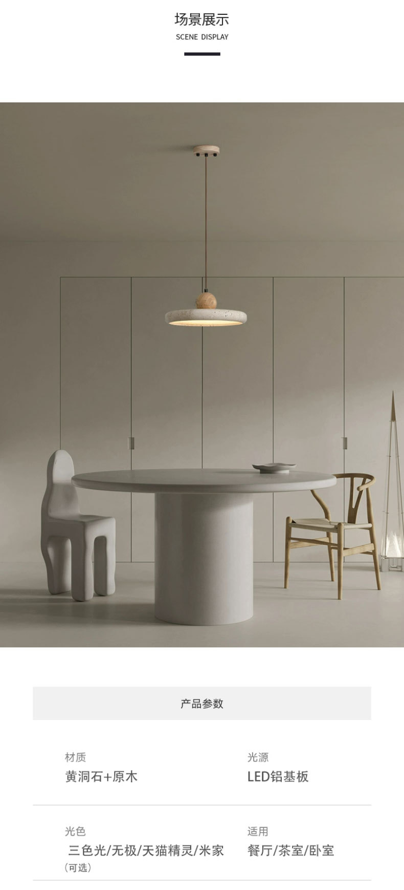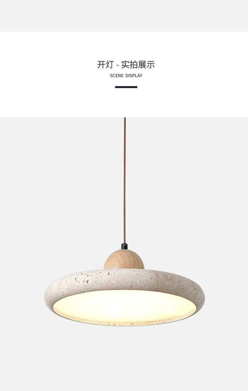 Lampu ruang makan gaya tenang batu Huangdong desainer kuno tengah kreatif UFO meja makan bulat bar kamar tidur lampu gantung samping tempat tidur