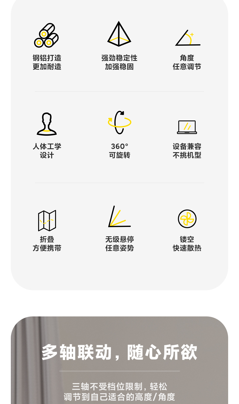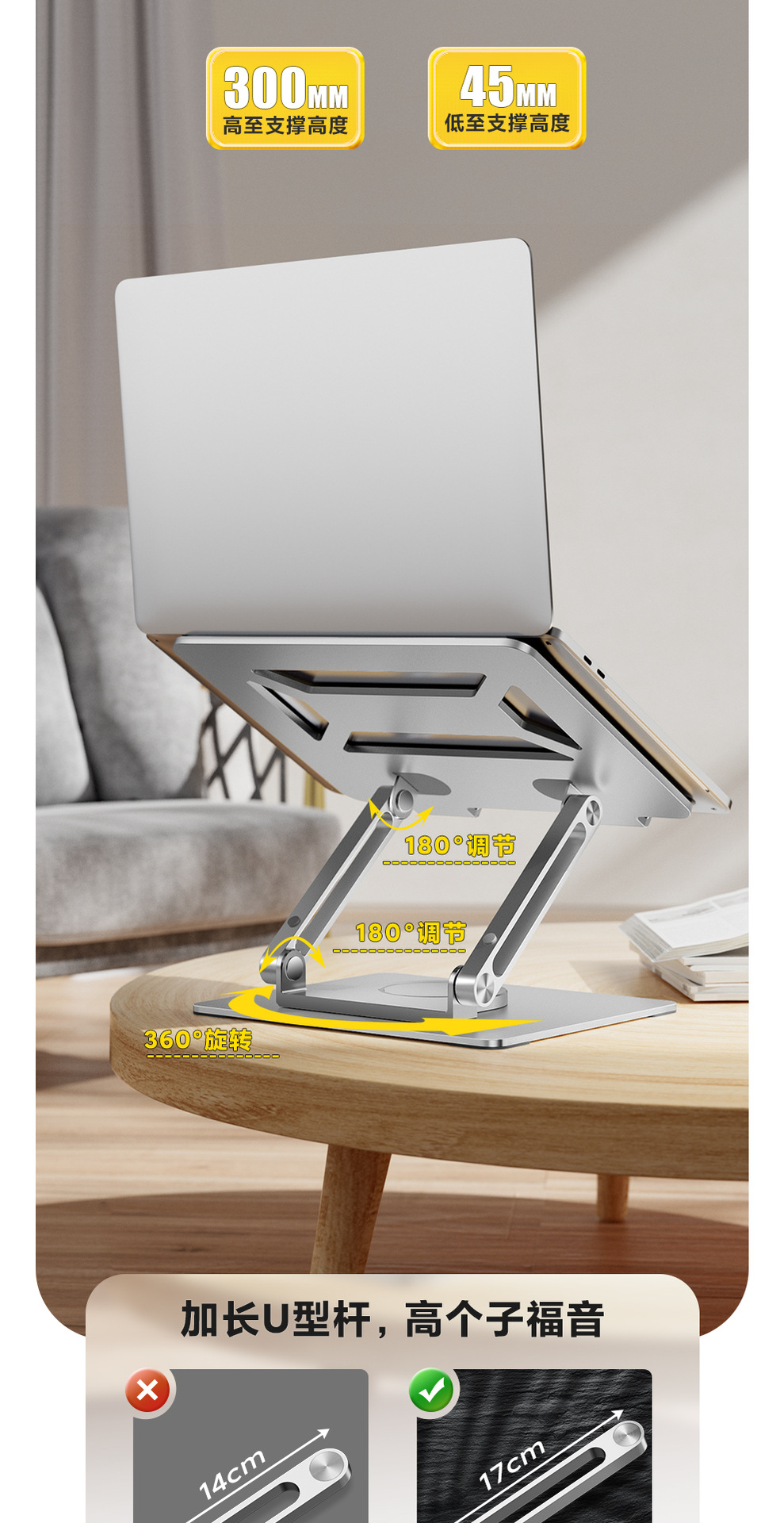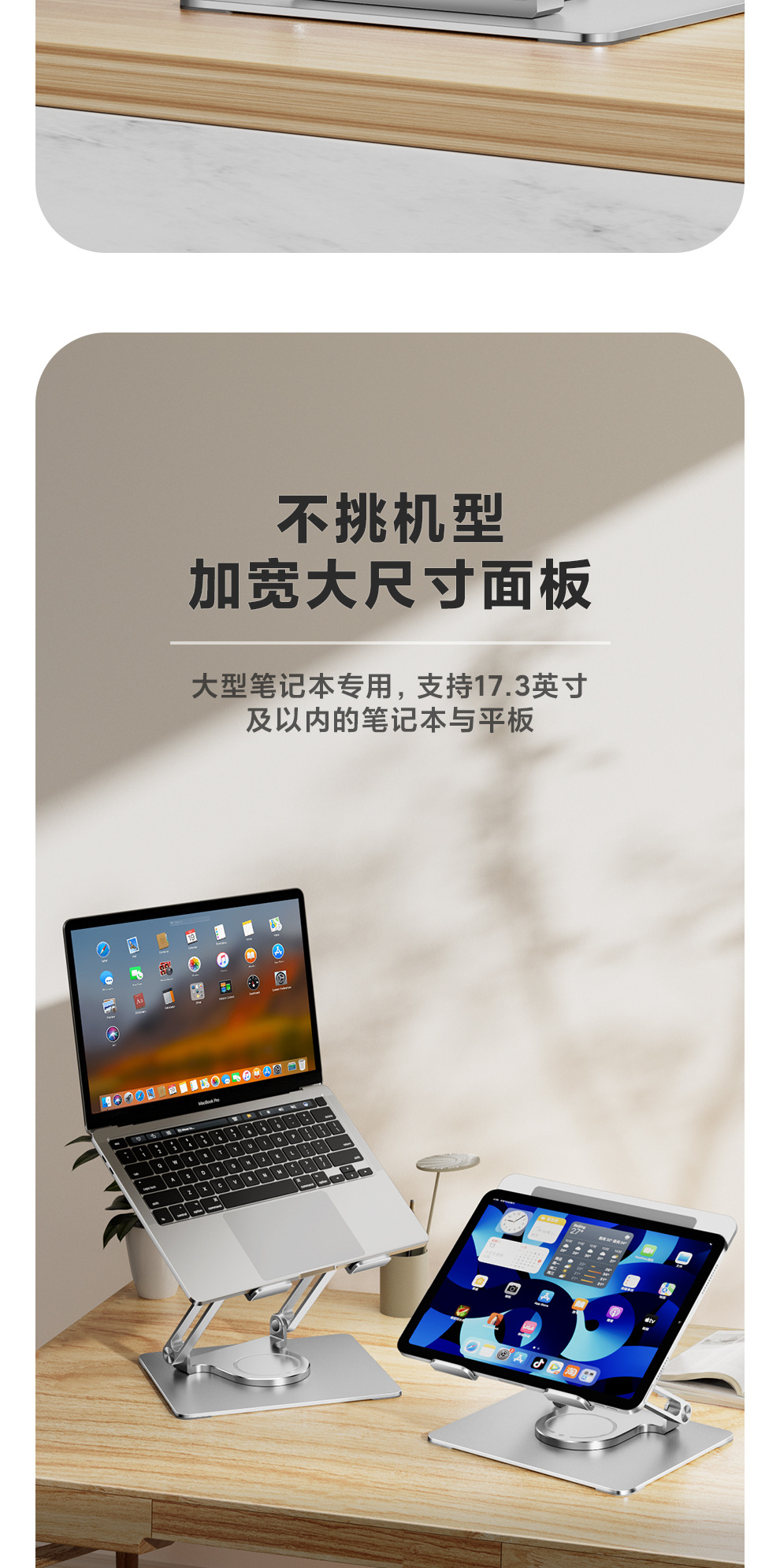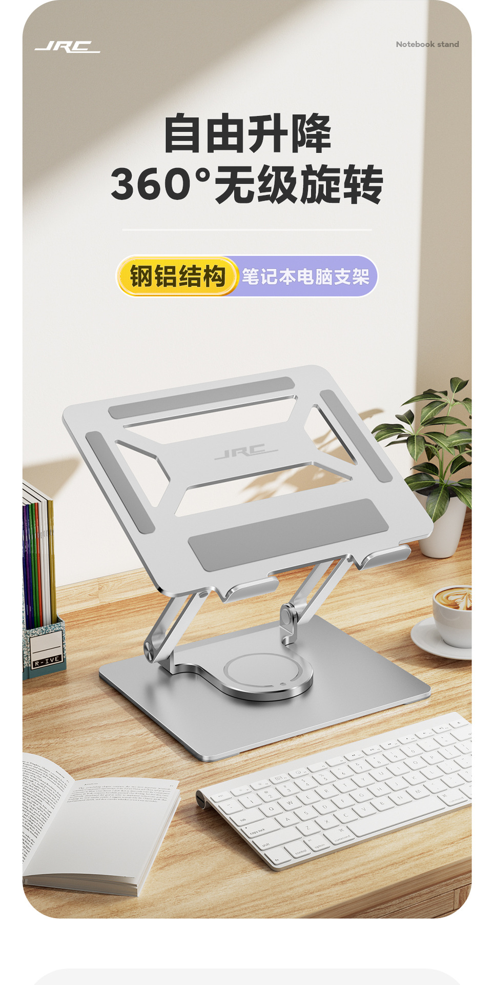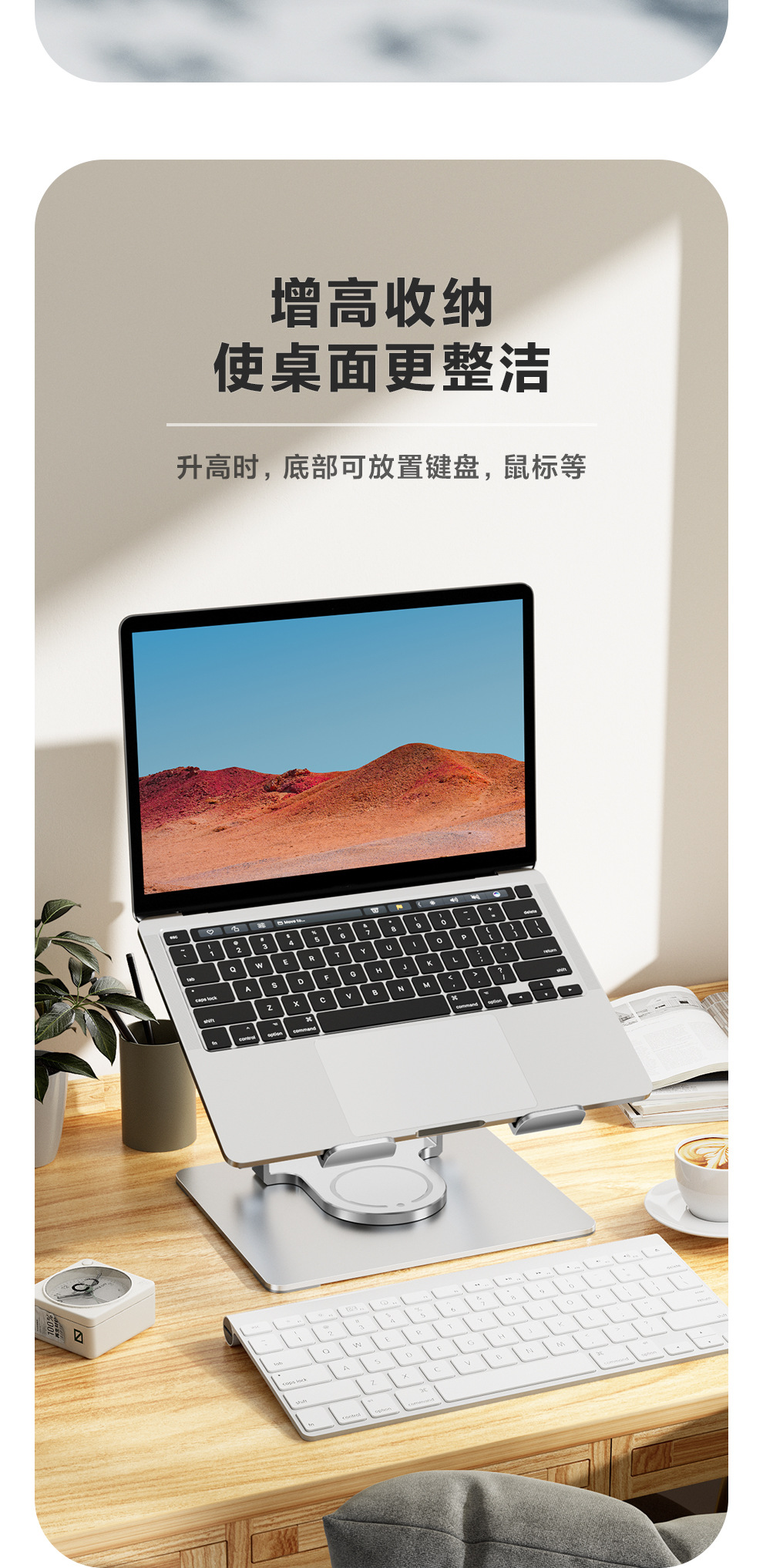 Dudukan notebook berputar 360 °, aksesori rak aluminium baja Huawei pro, dudukan penambah tinggi vertikal portabel