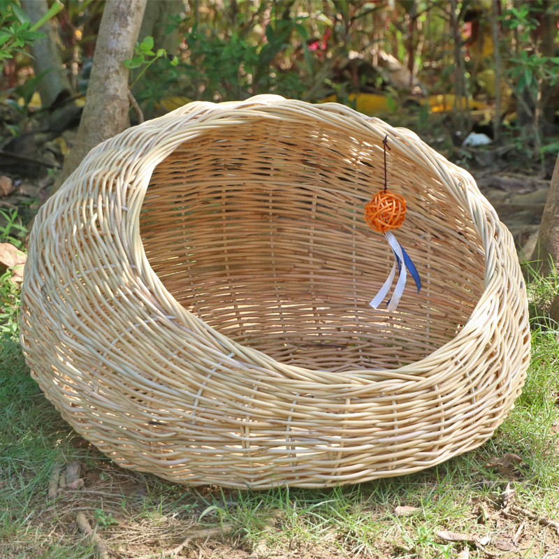 Keranjang gantung tempat tidur kucing imitasi rotan buatan tangan, kandang kucing grosir, alas hewan peliharaan semi tertutup, rumah anjing, vila kucing anyaman.