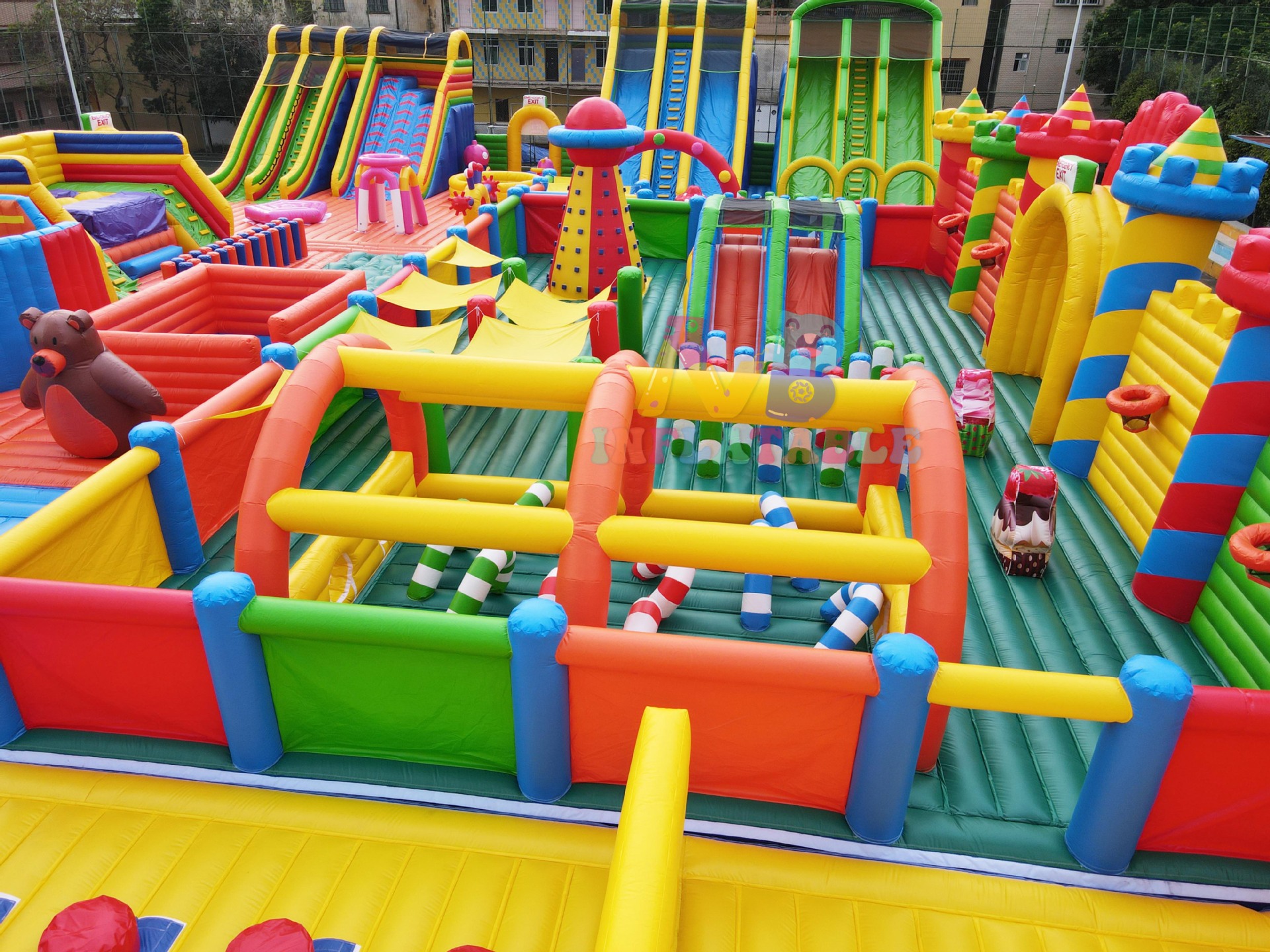 我们广泛的产品范围包括充气保镖城堡、水上滑梯、水上公园、户外帐篷、特技安全气囊、B M X/F M X安全气囊、雪地安全气囊、自由降落安全气囊、充气运动游戏、气垫、充气功能、保险杠球、骑牛机等。我们还提供O E M和O D M服务,以满足您的具体要求。