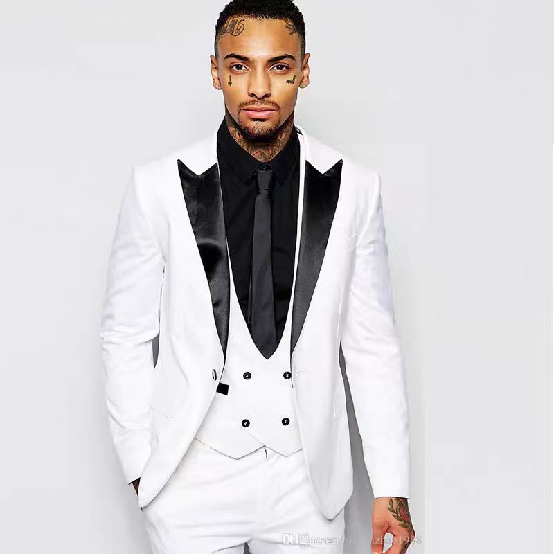 Setelan jas tiga potong baru Perdagangan Luar Negeri Eropa dan Amerika setelan kerah lancip hitam pengantin pria terbaik gaun tuksedo perjamuan