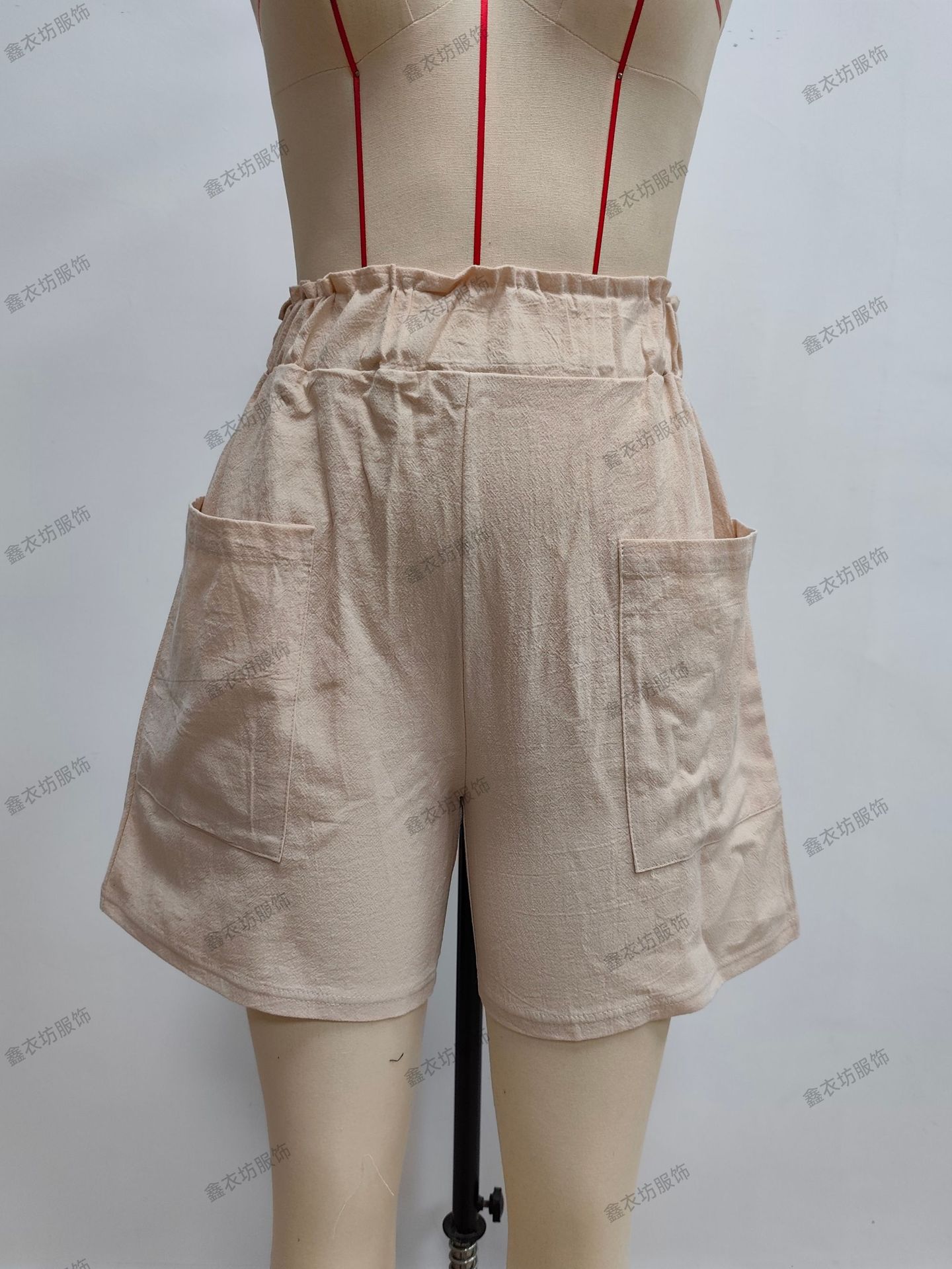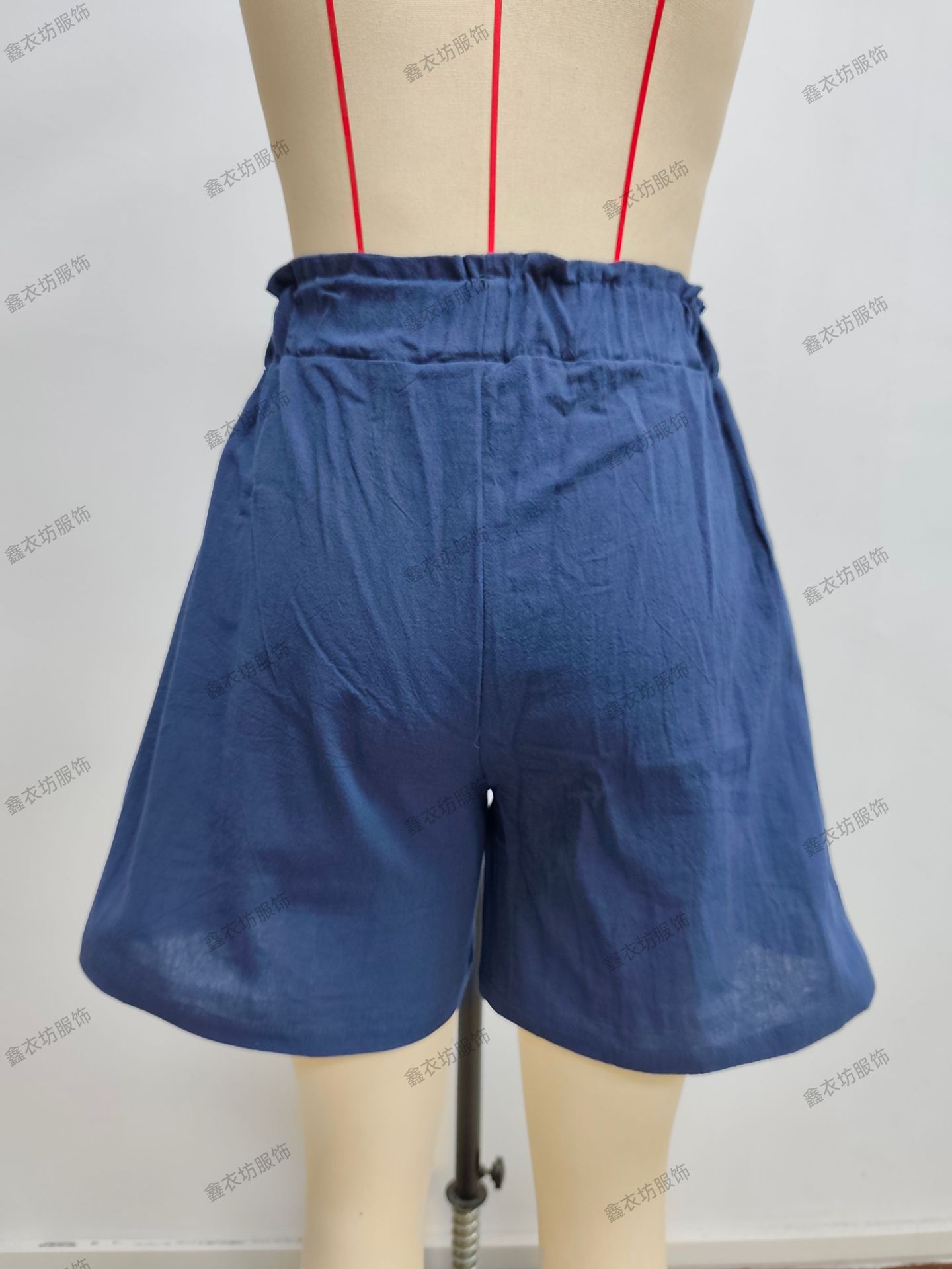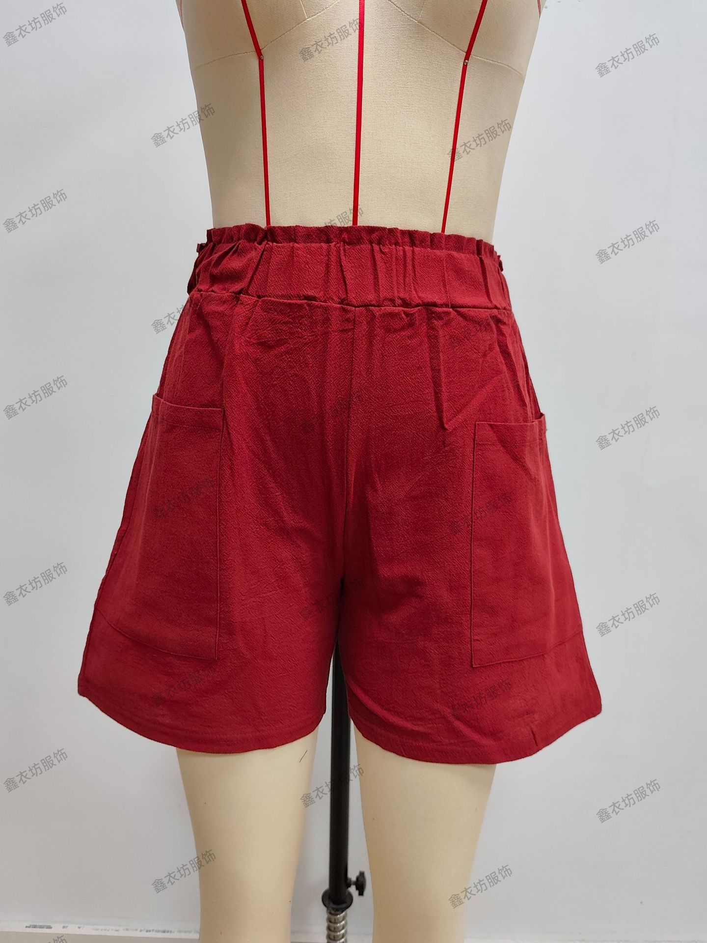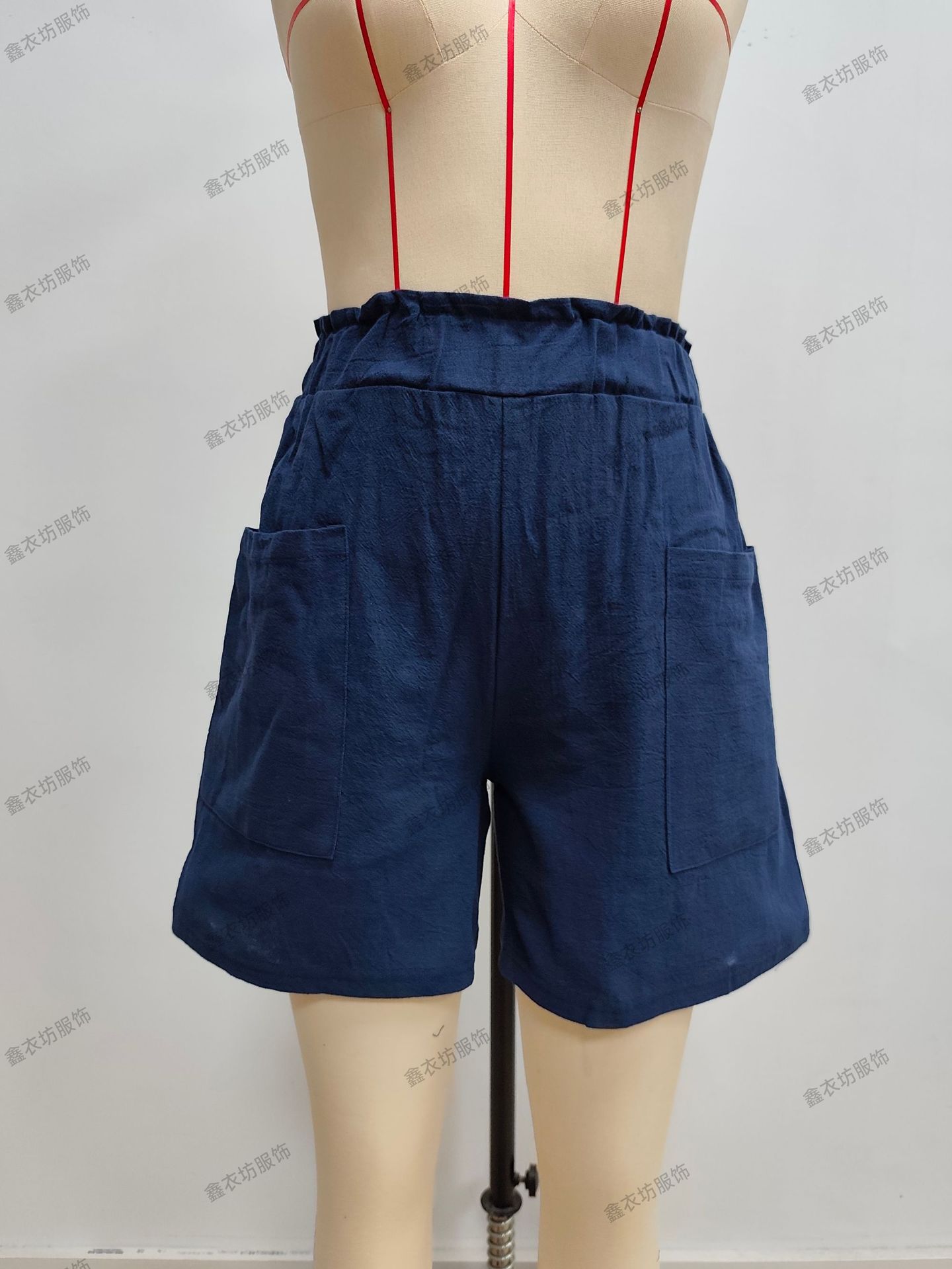 Celana pendek wanita katun dan linen model high-waisted, ukuran besar, potongan lebar, kasual, modis, Amazon Eropa dan Amerika baru 2025