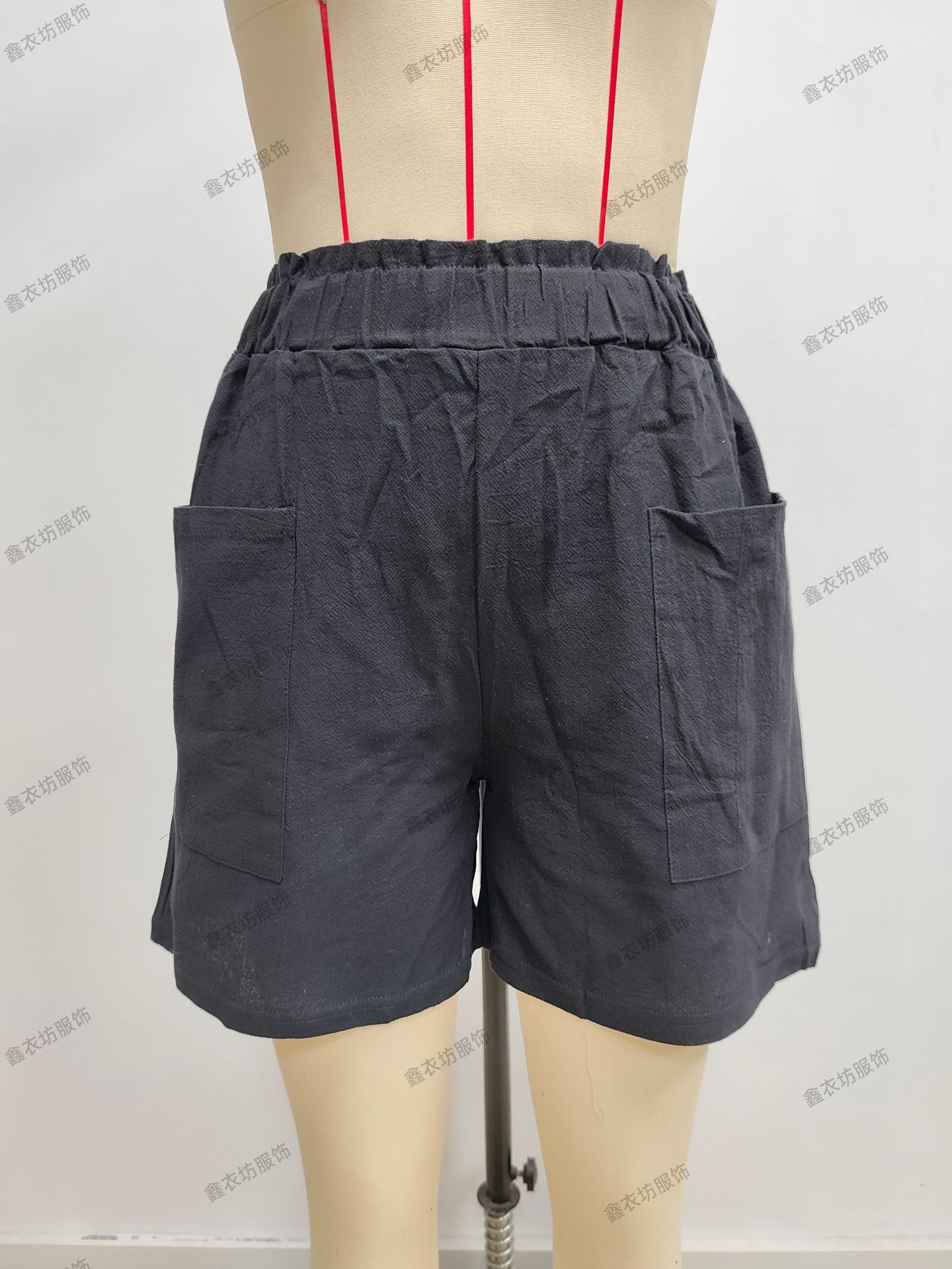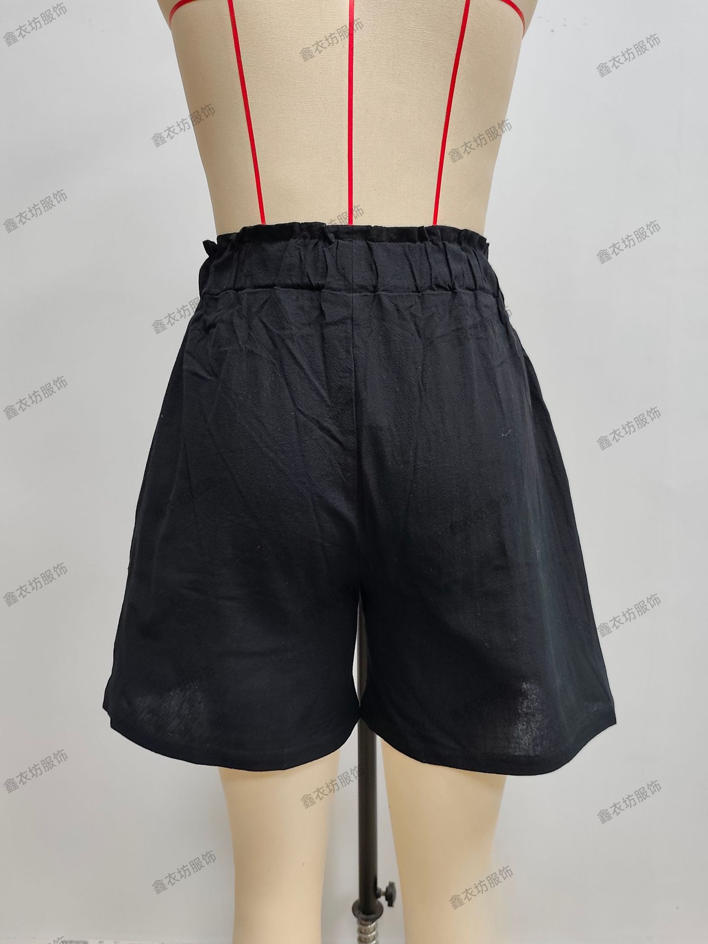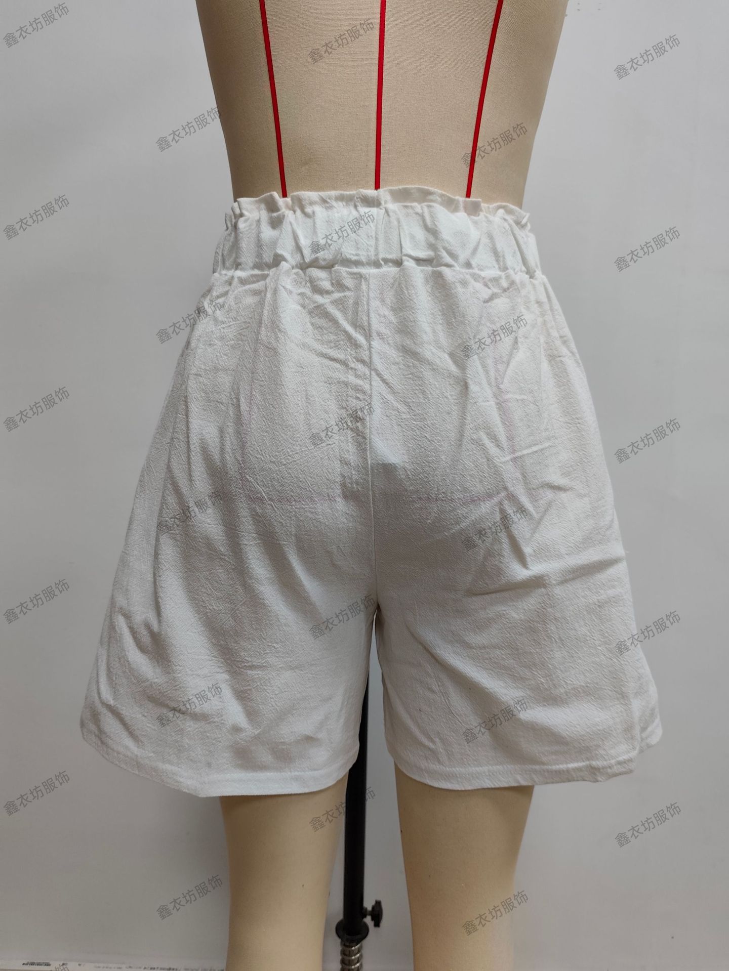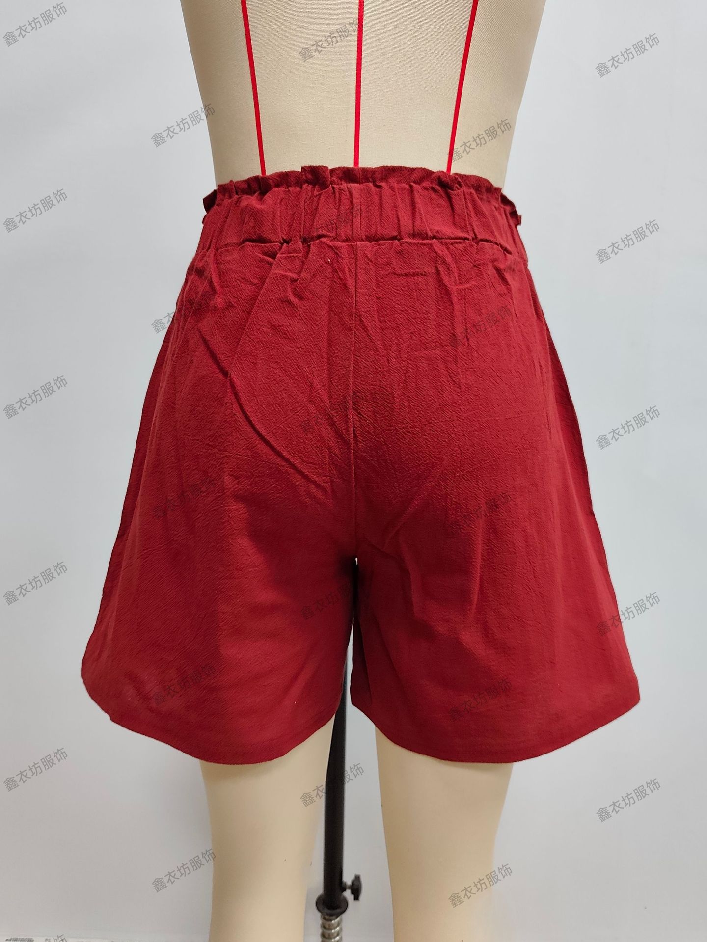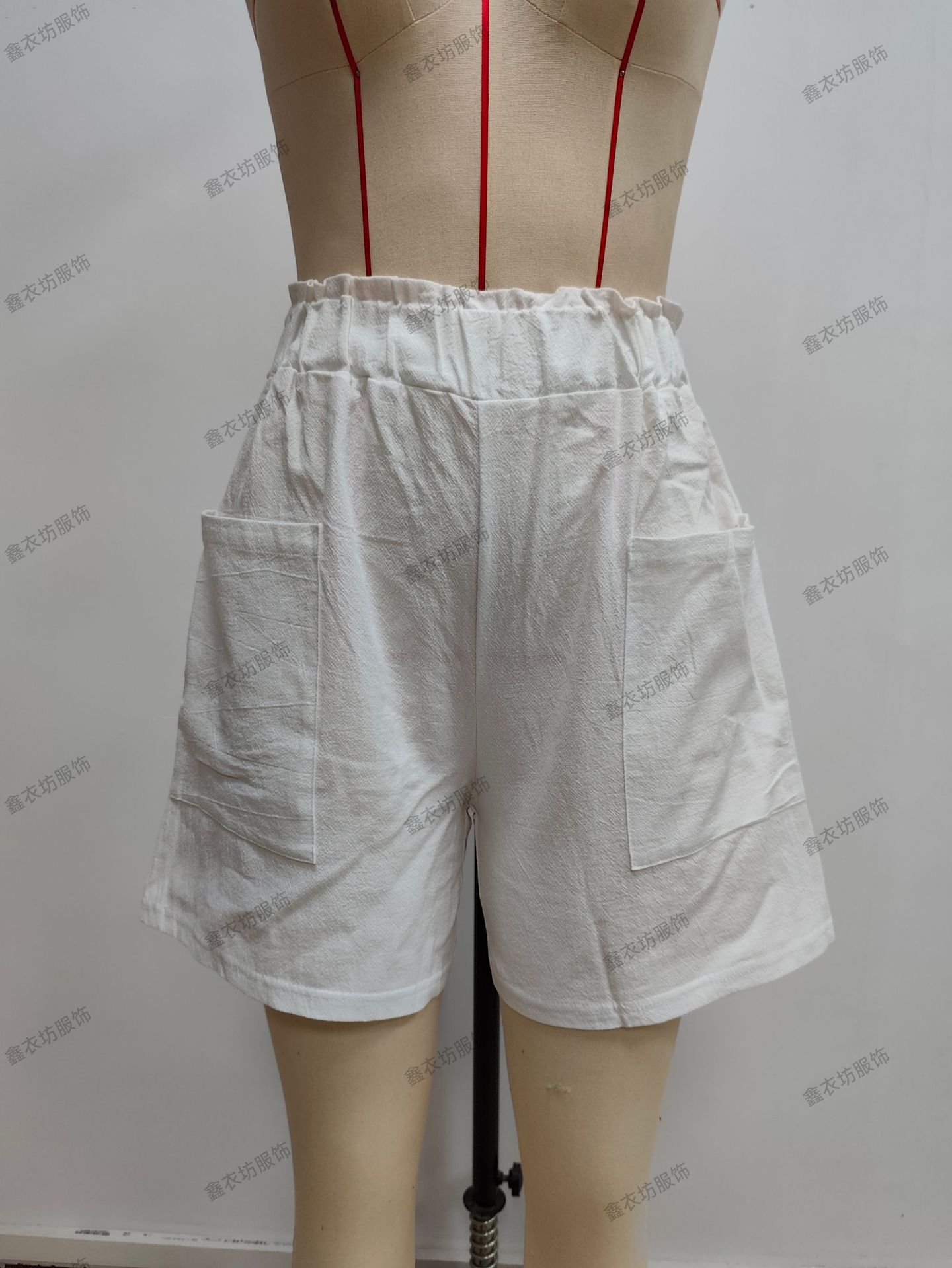 Celana pendek wanita katun dan linen model high-waisted, ukuran besar, potongan lebar, kasual, modis, Amazon Eropa dan Amerika baru 2025