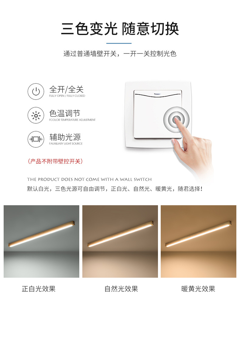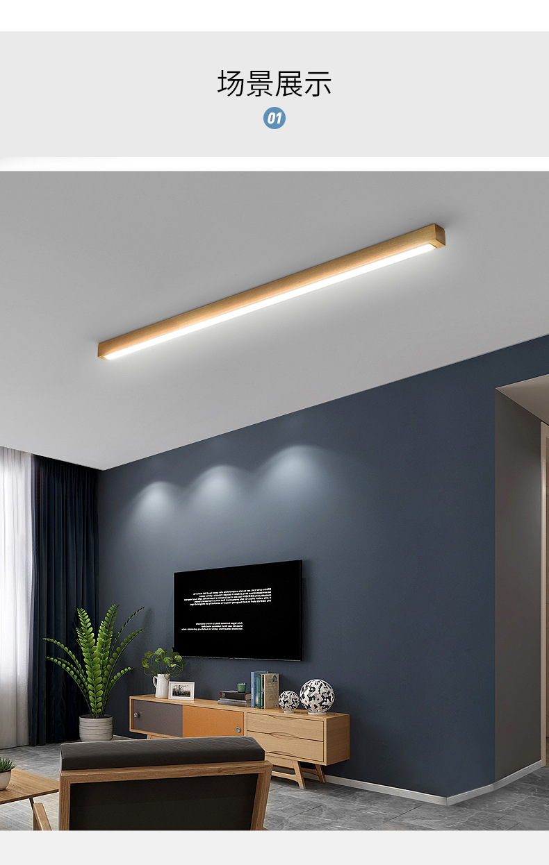 Lampu langit-langit strip kayu solid untuk lorong, perlindungan mata spektrum penuh, warna walnut Nordik, perlengkapan pencahayaan kayu solid Zhongshan
