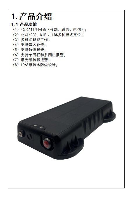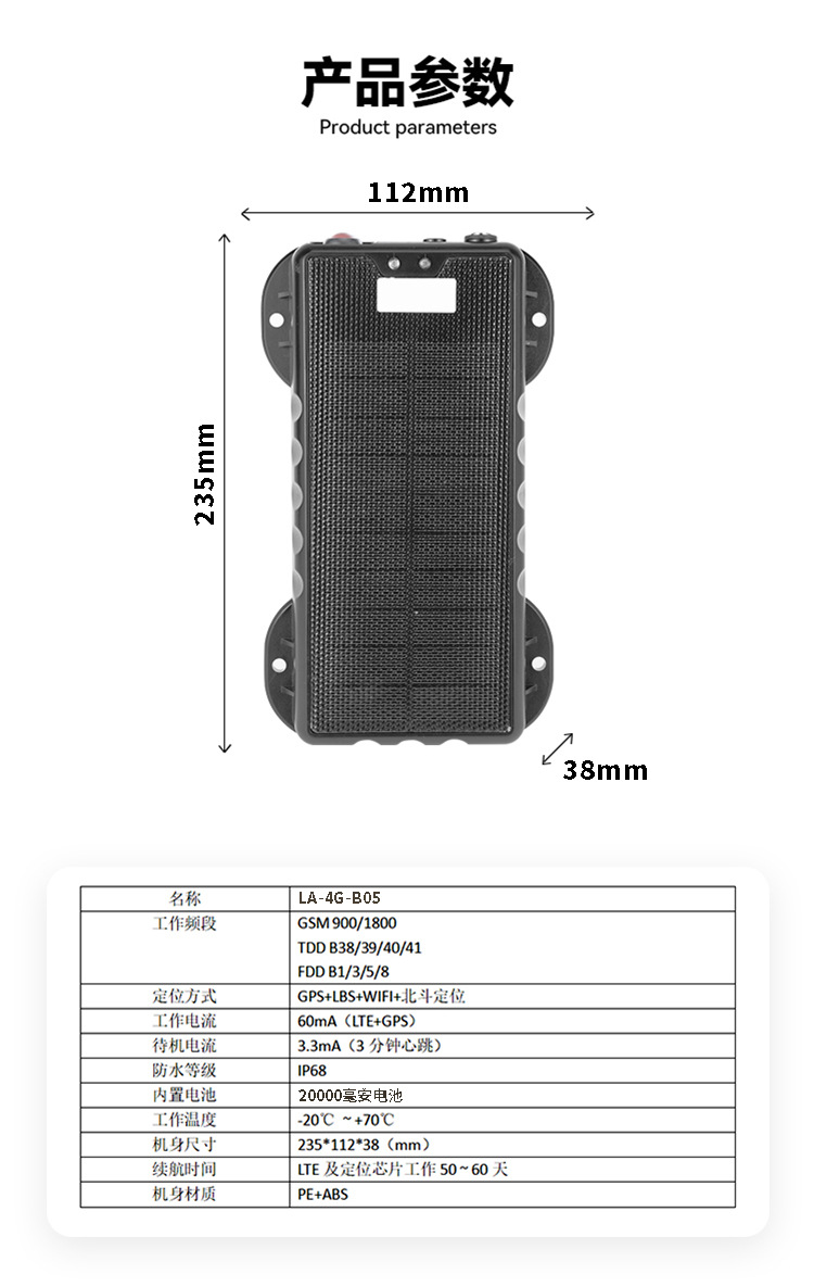 (8)续航:电池续航时间(LTE 及定位芯片工作)50-60 天