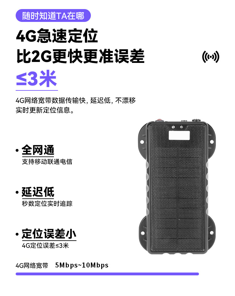 (5)内置大容里存储芯片,支持离线状态下数据存储,盲区数据的补传;当太阳能定位器 在无线信号弱或者于扰严重的地方,车机会把车辆运行的数据暂时存储在ELASH内,当无线信号恢复正常之后,能补传这些数据,实现数据不遗失