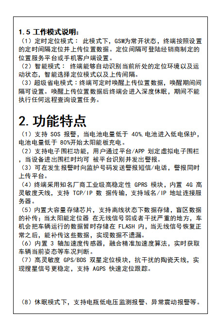 (8)休眠模式下,支持电瓶低电压监测报警、异常震动报警等。
