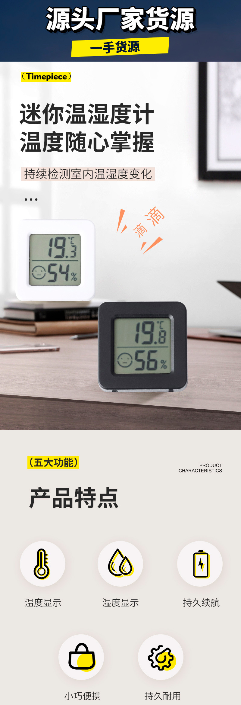 Termometer dan higrometer mini untuk penggunaan di dalam ruangan, termometer elektronik berperekat magnetik, higrometer digital, cerdas presisi tinggi