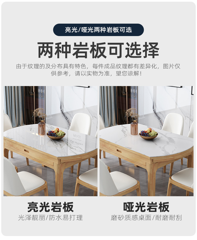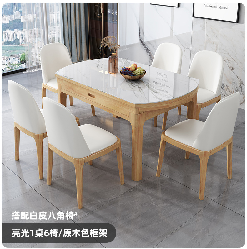 Set meja makan Nordic slate jumping platform, kayu karet, semua kayu solid, cocok untuk rumah tangga kecil, meja makan serbaguna yang dapat diperpanjang, persegi dan bundar.
