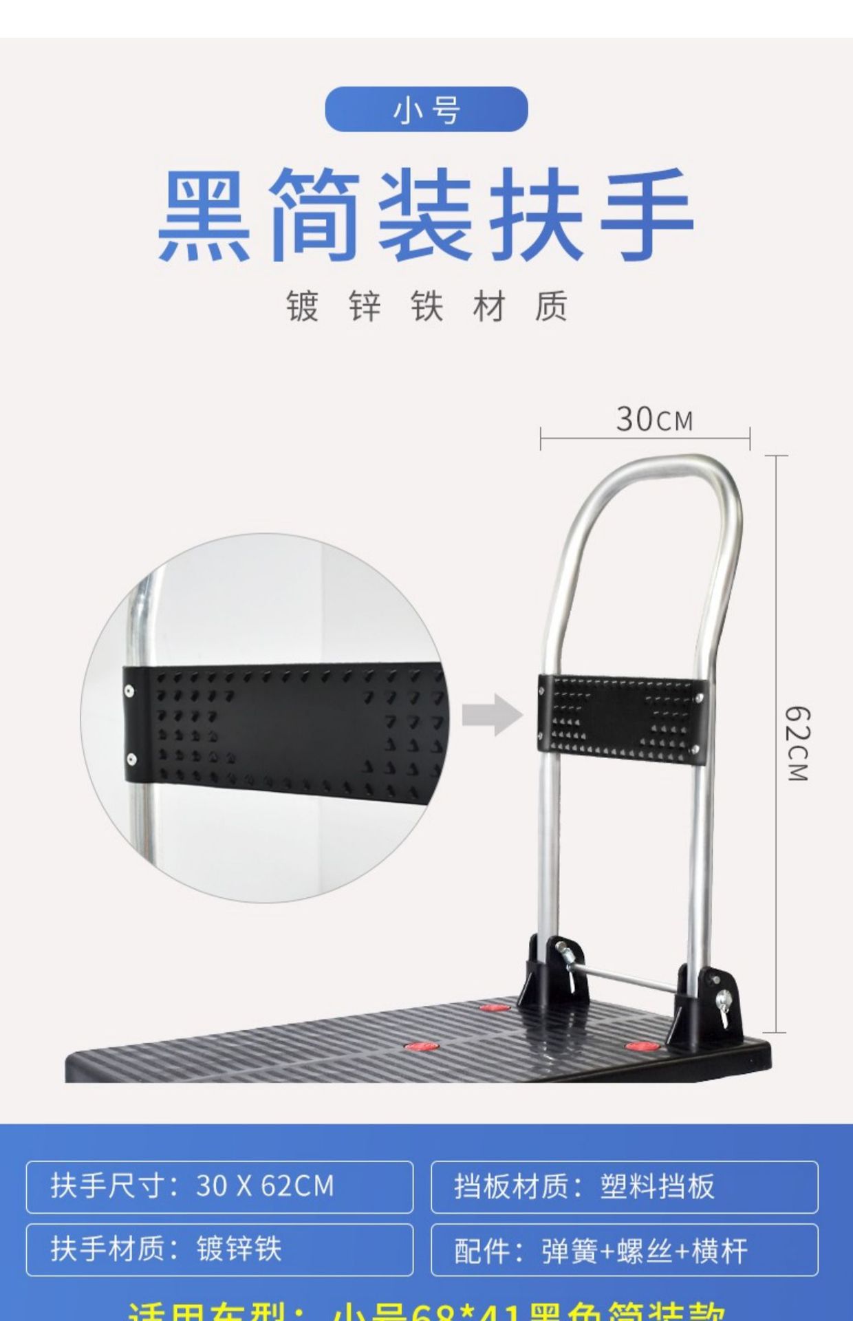 Troli sandaran tangan skuter datar, Aksesori sekrup roda panel plastik engsel pegas pegangan lipat