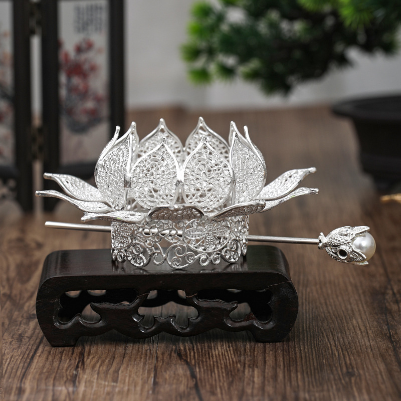 Aksesori rambut Hanfu, mahkota rambut model step shake untuk wanita, aksesori kostum Xiuhe bergaya kuno motif teratai, aksesori bergaya Ming, aksesori rambut motif teratai bergaya Song.