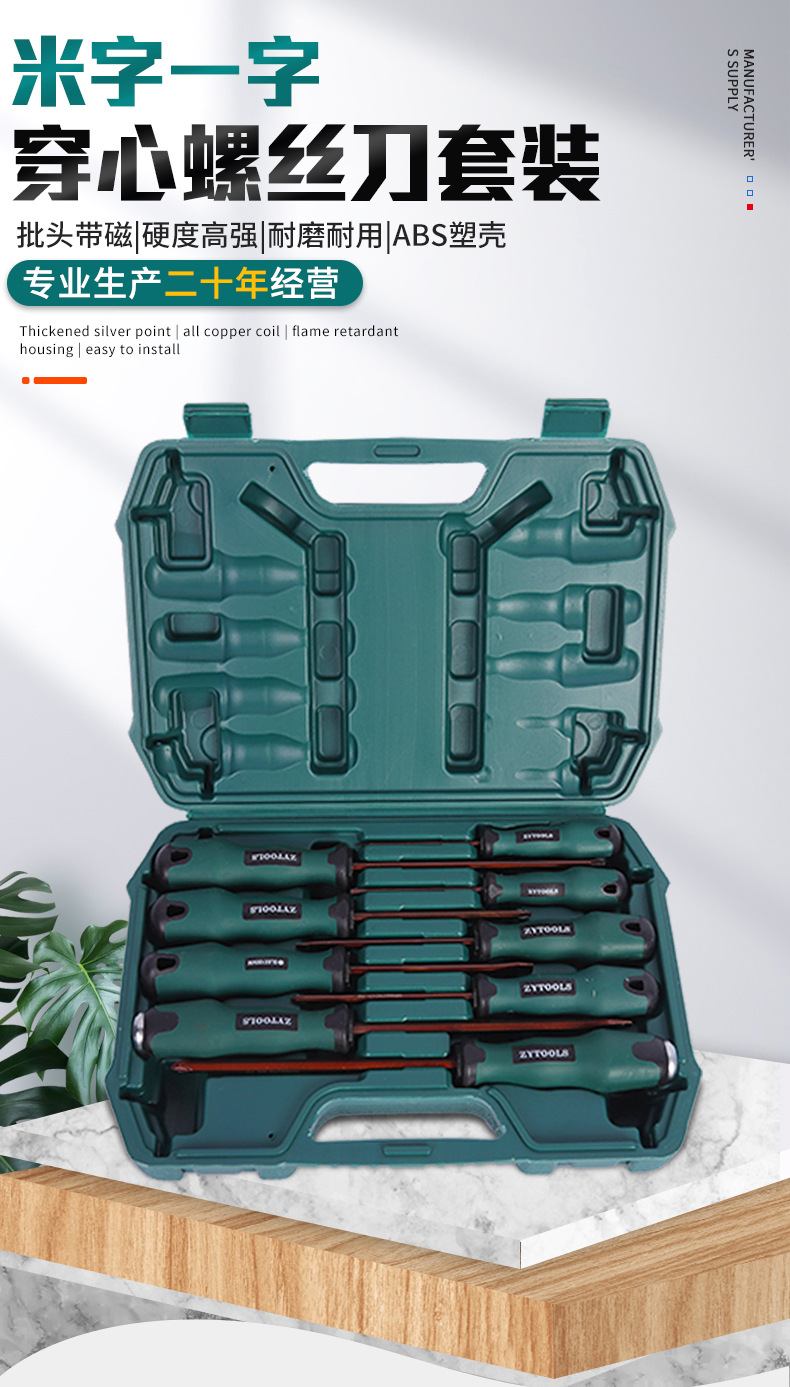 Obeng magnetik kepala silang grosir dengan gagang, set obeng kepala pipih anti-selip, produsen perkakas magnetik