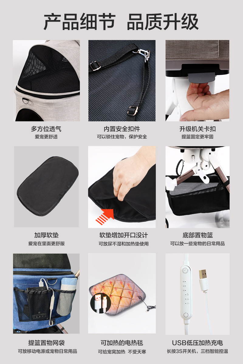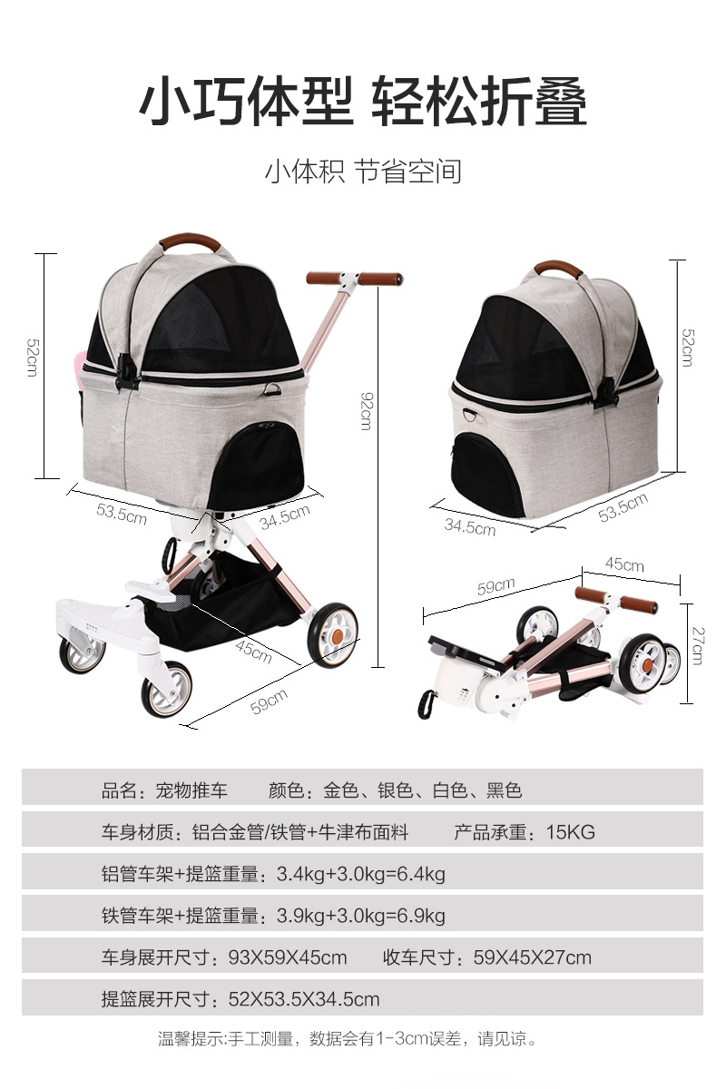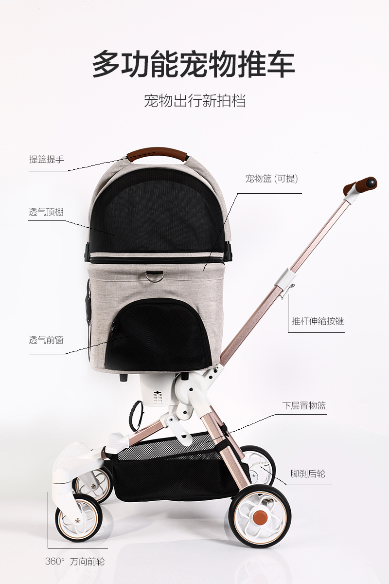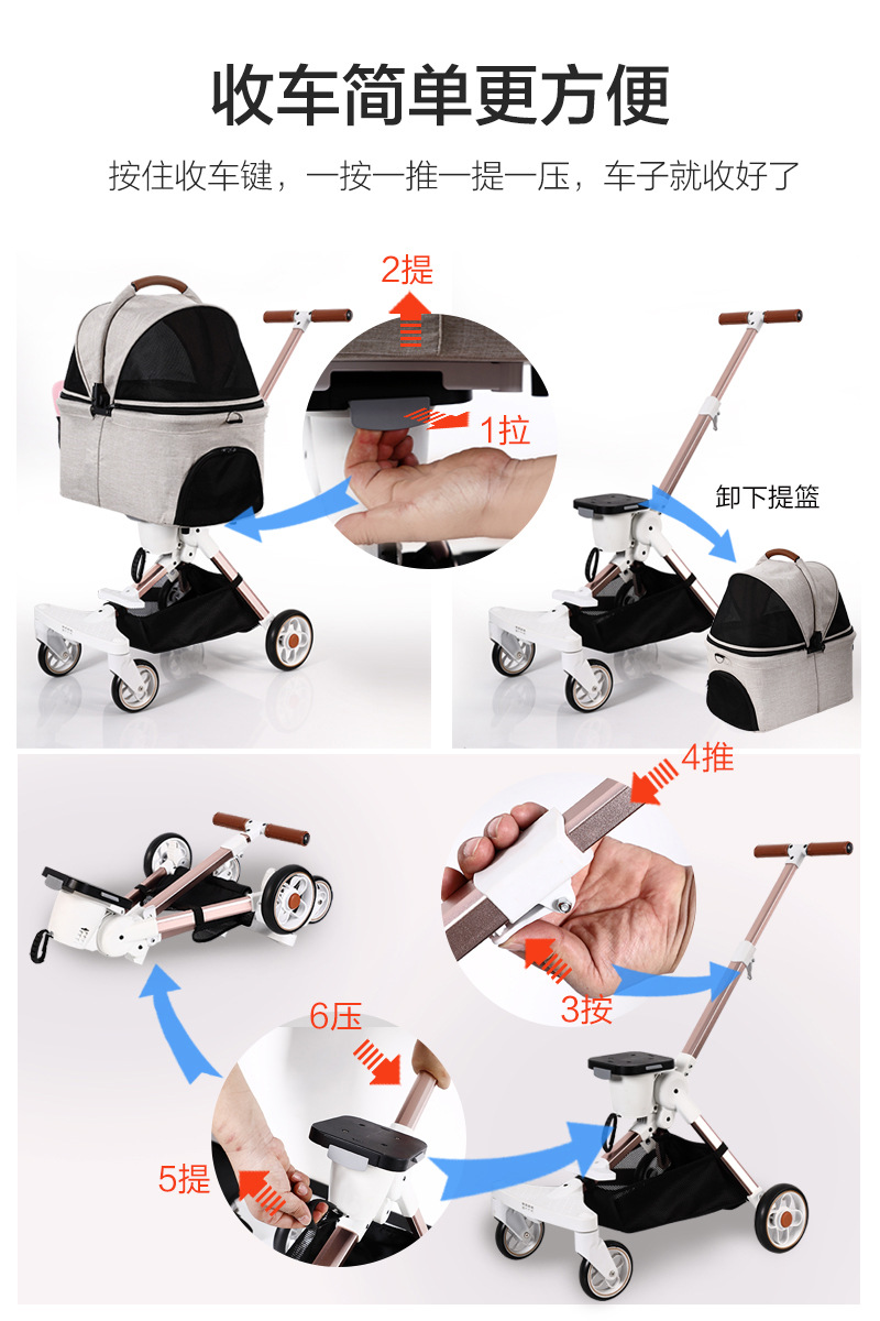 新款铝合金超轻中小型猫狗可折叠宠物手推车轻便户外出行遛宠神器