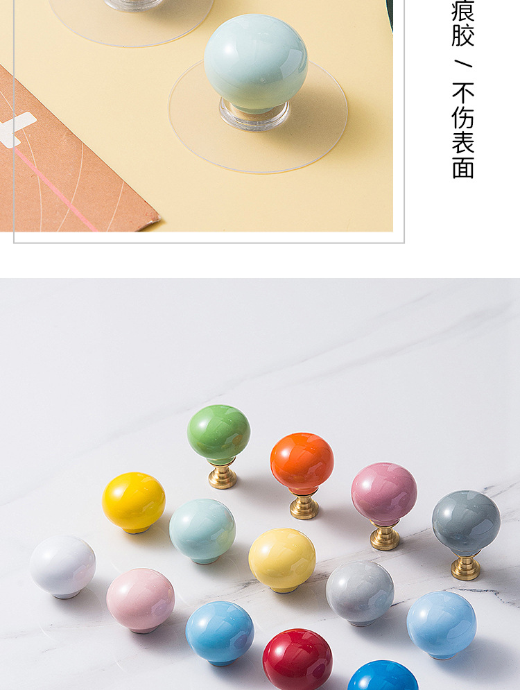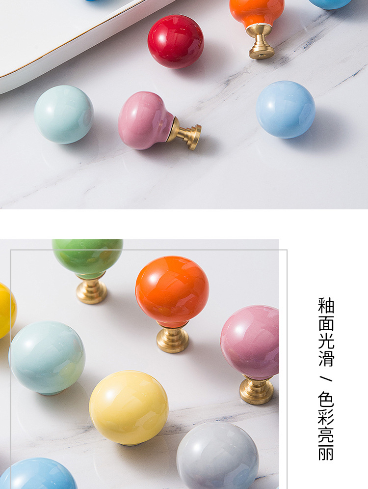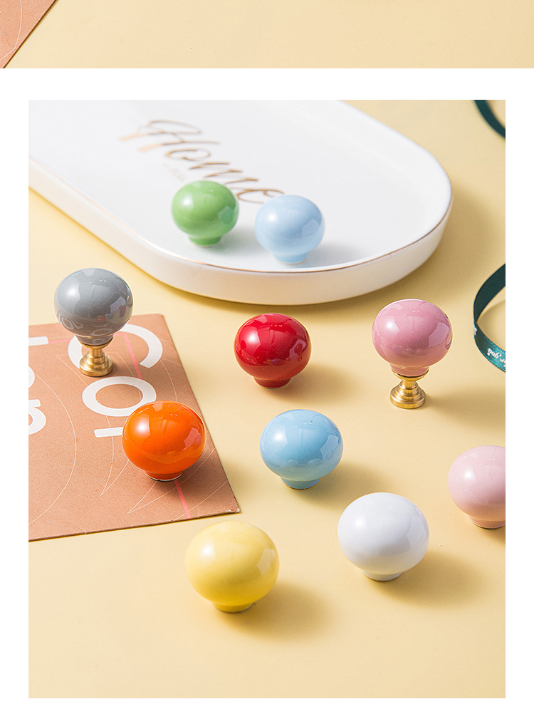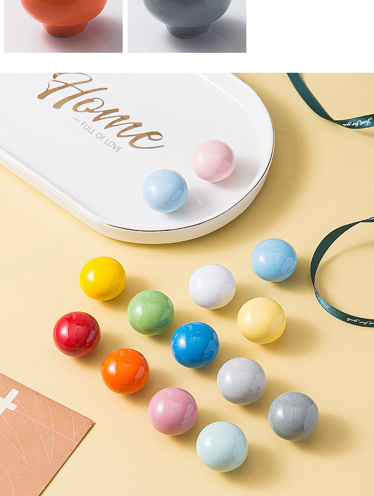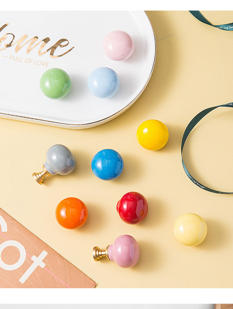 Pegangan keramik modern minimalis untuk pintu lemari laci kabinet, kenop bola bulat lucu, furnitur perdagangan luar negeri baru untuk anak-anak.