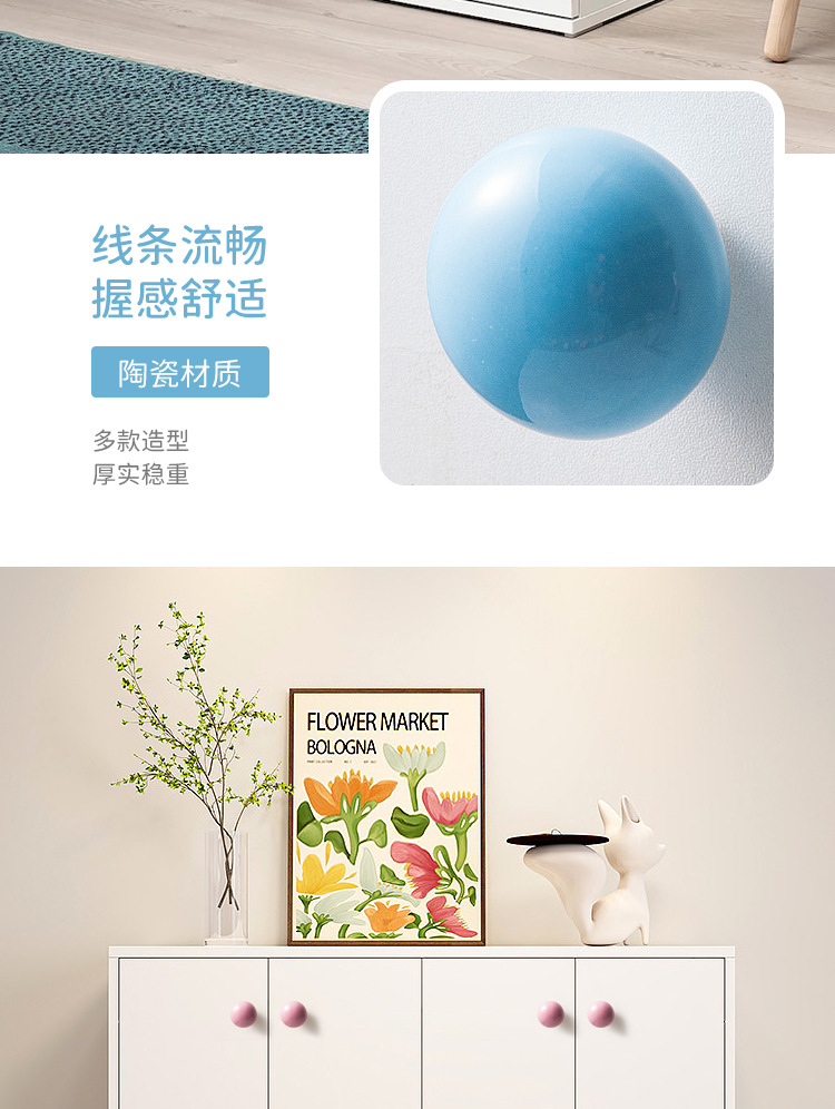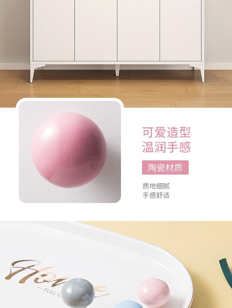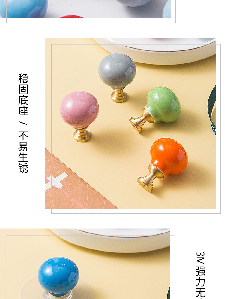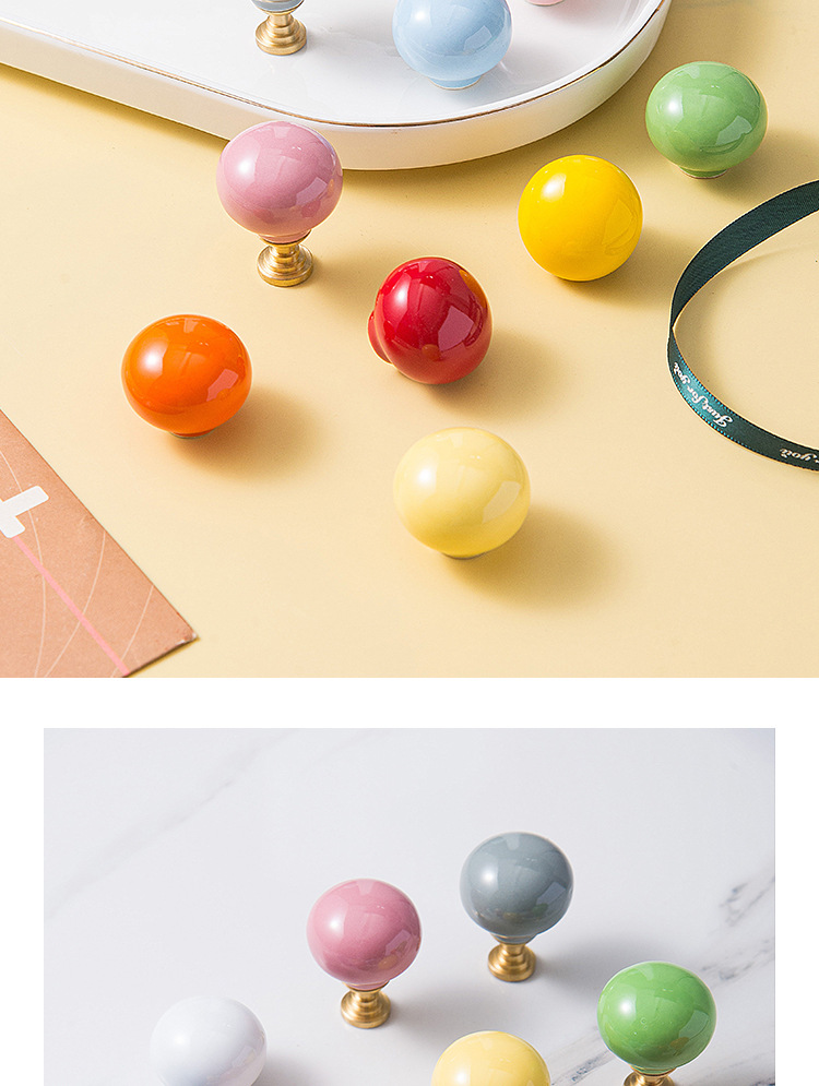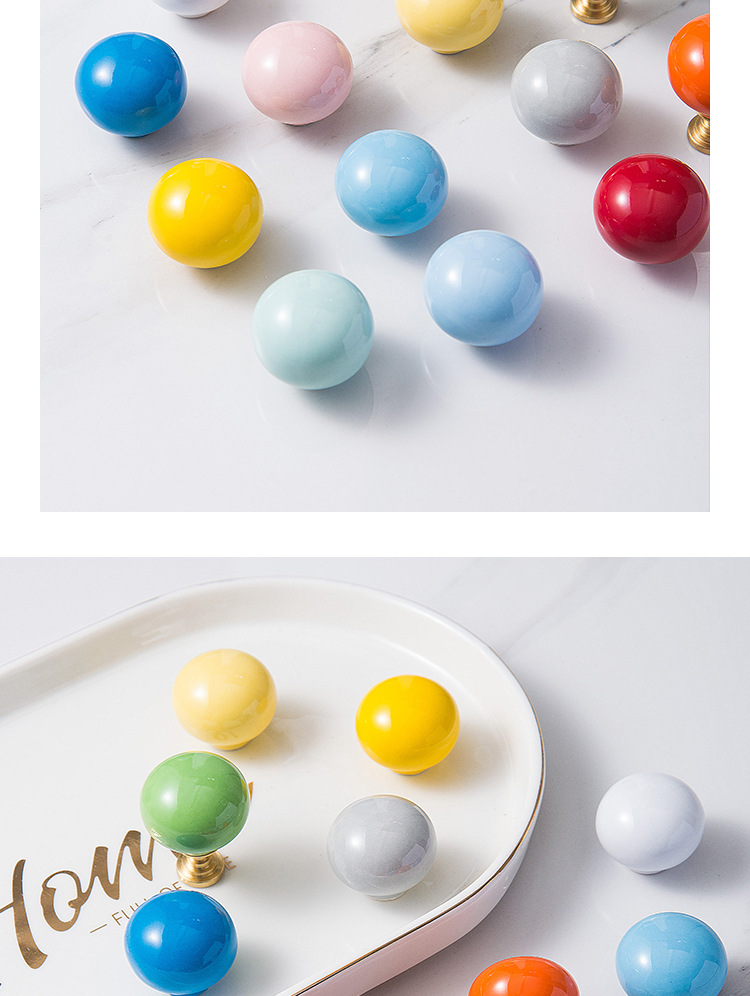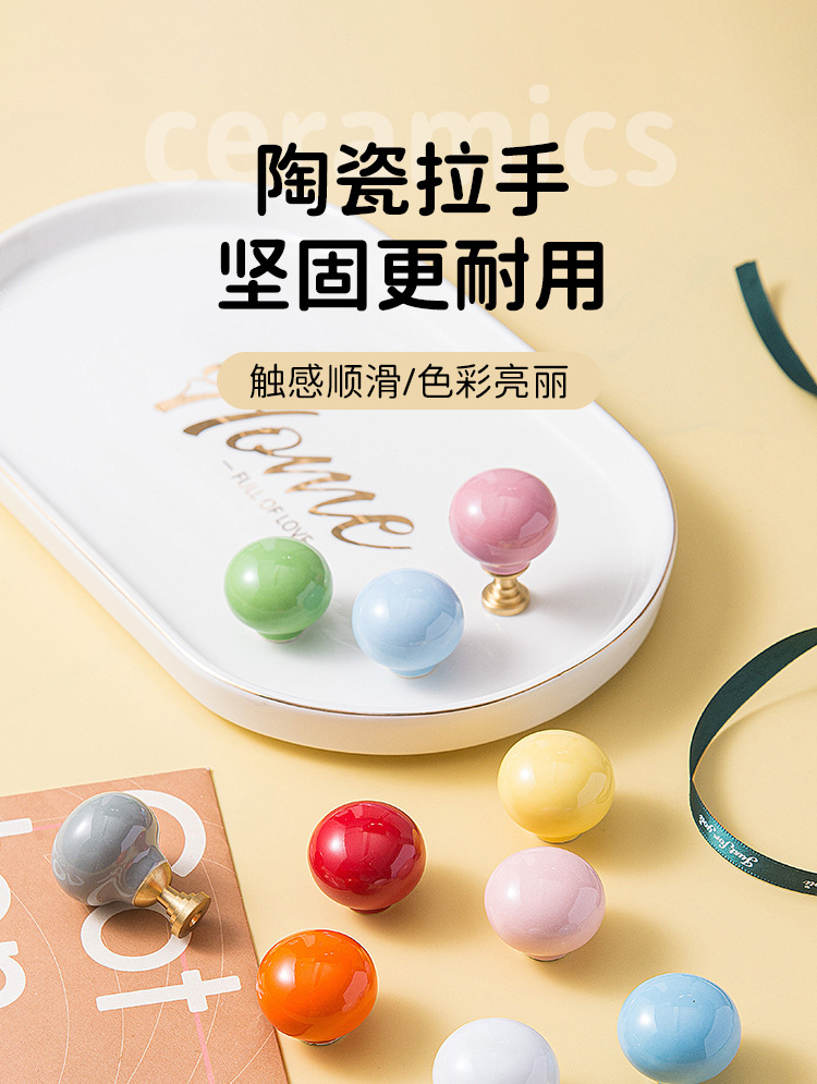 Pegangan keramik modern minimalis untuk pintu lemari laci kabinet, kenop bola bulat lucu, furnitur perdagangan luar negeri baru untuk anak-anak.