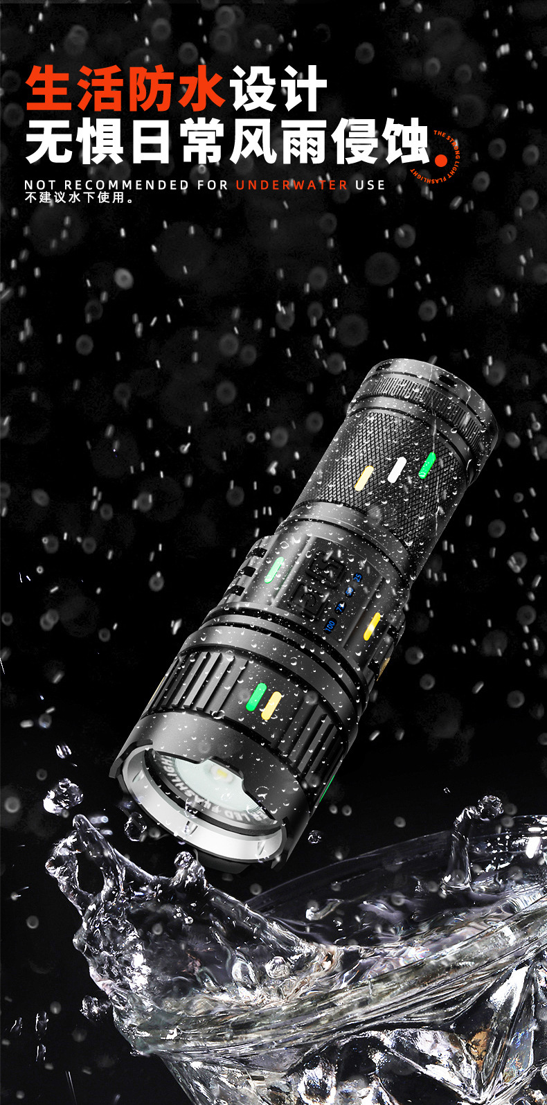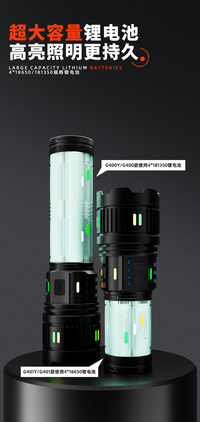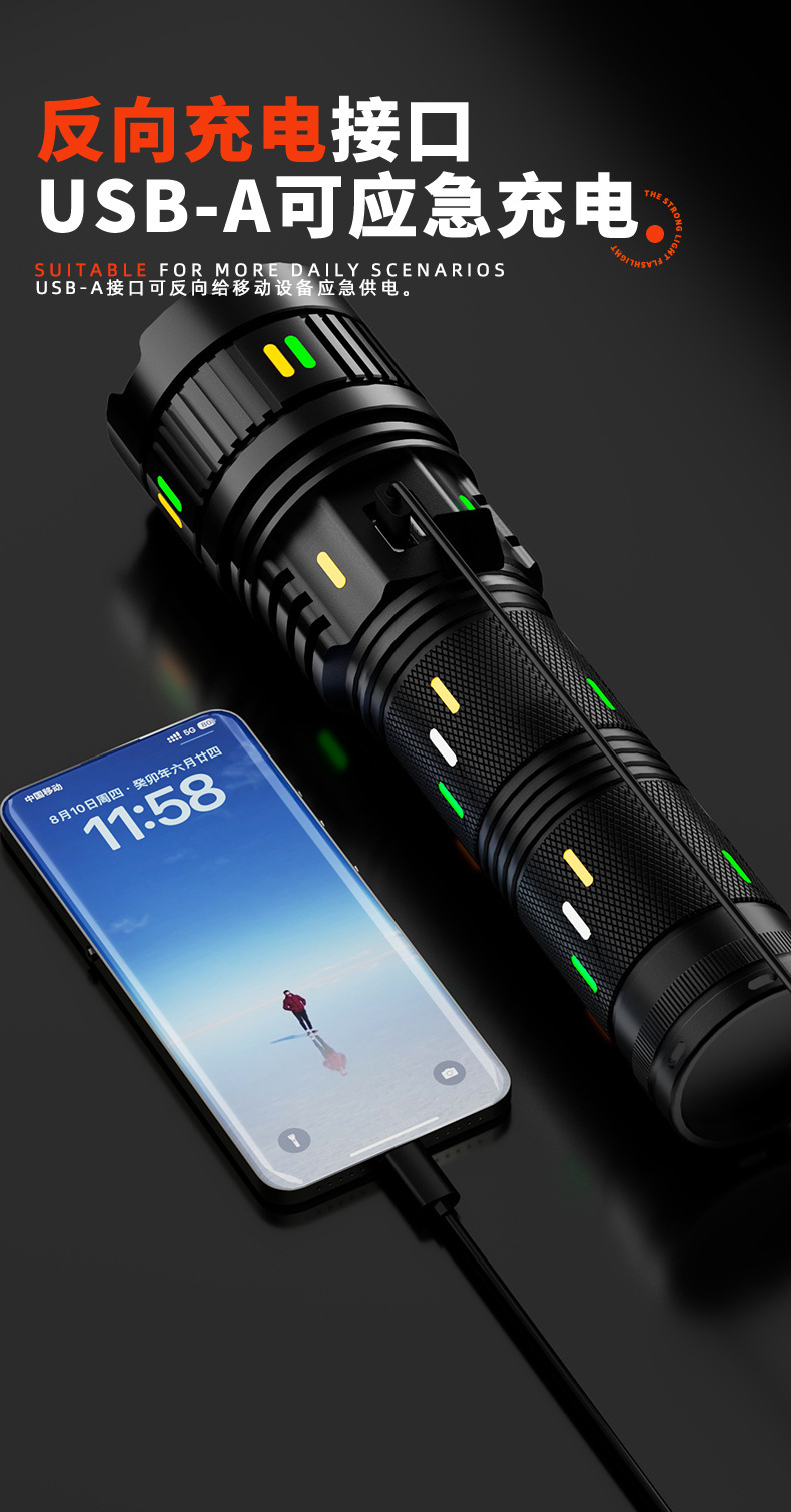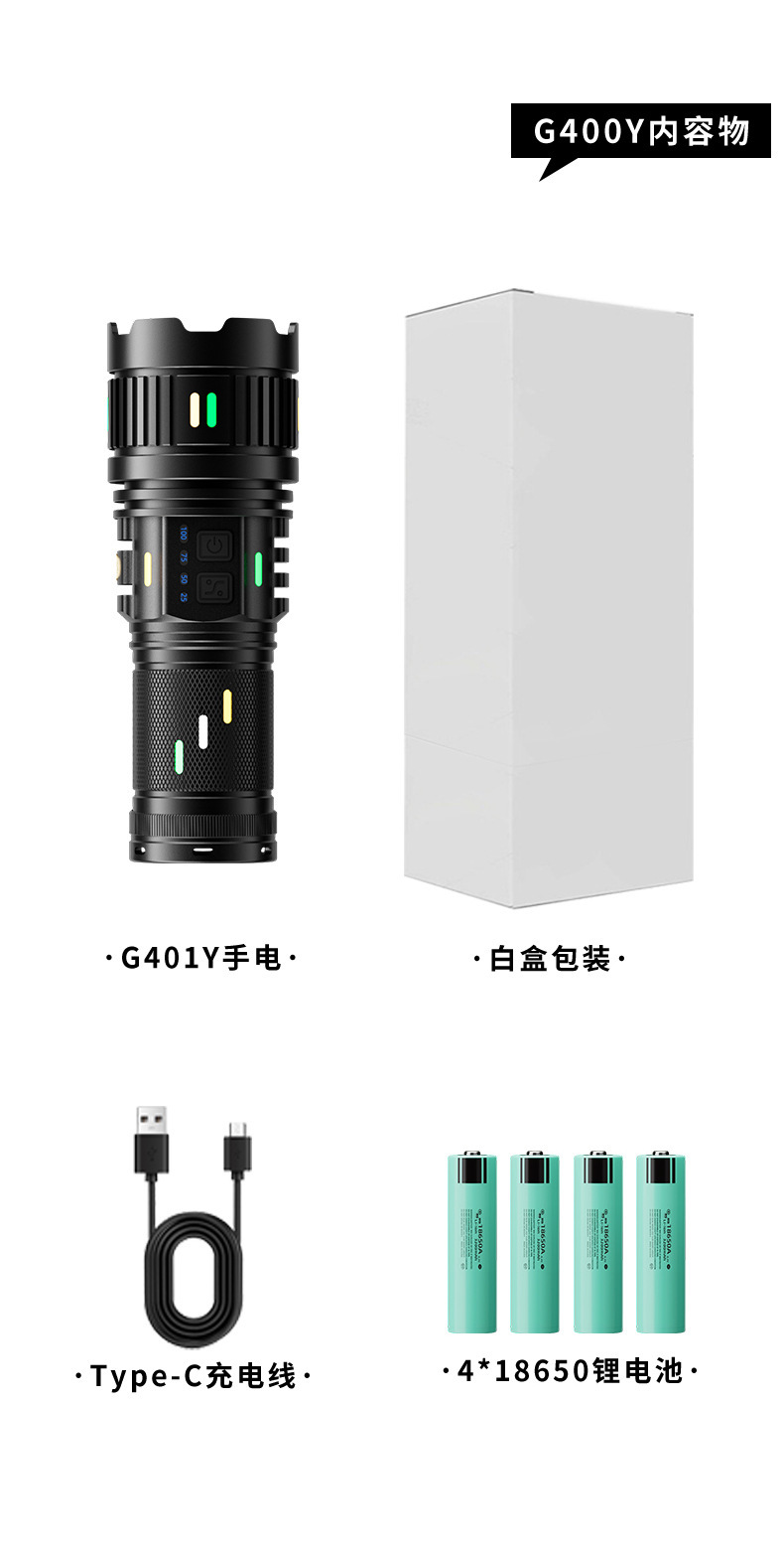 Senter paduan aluminium, cahaya kuat, terang, jarak jauh, multifungsi, tahan lama, luar ruangan, pengisian daya darurat tahan air G400