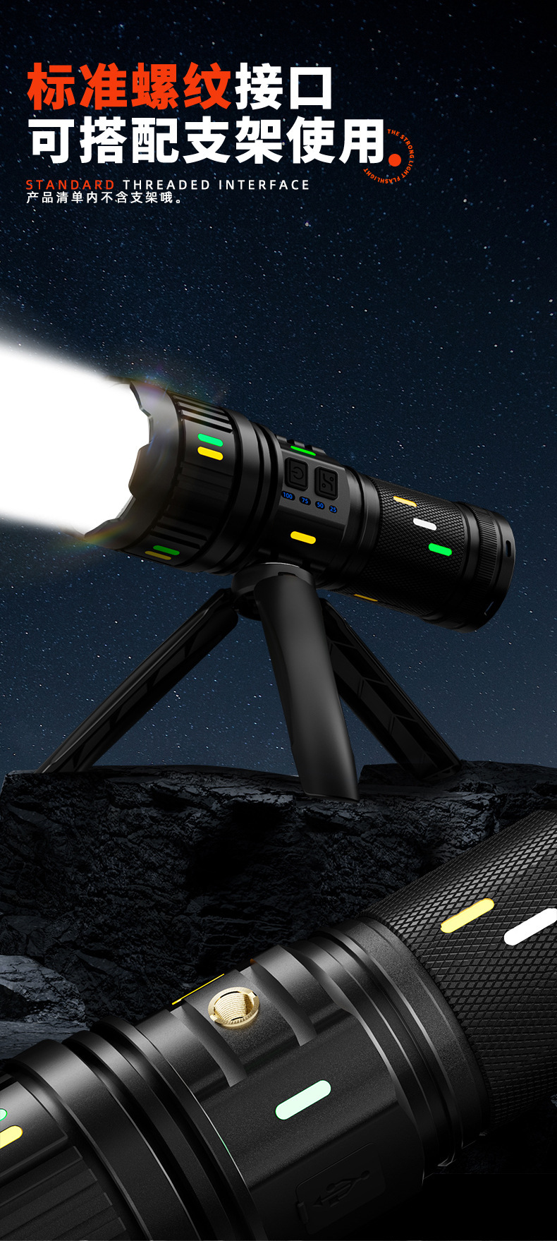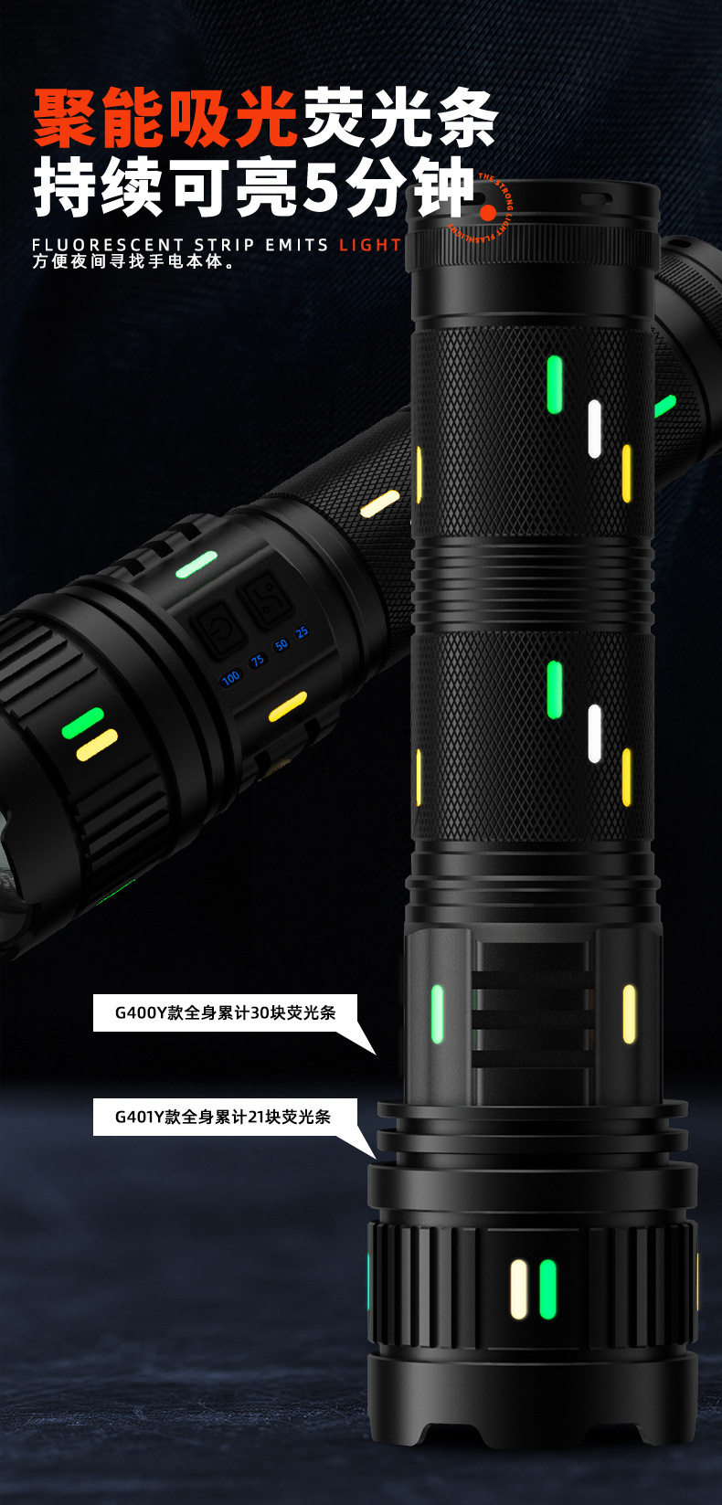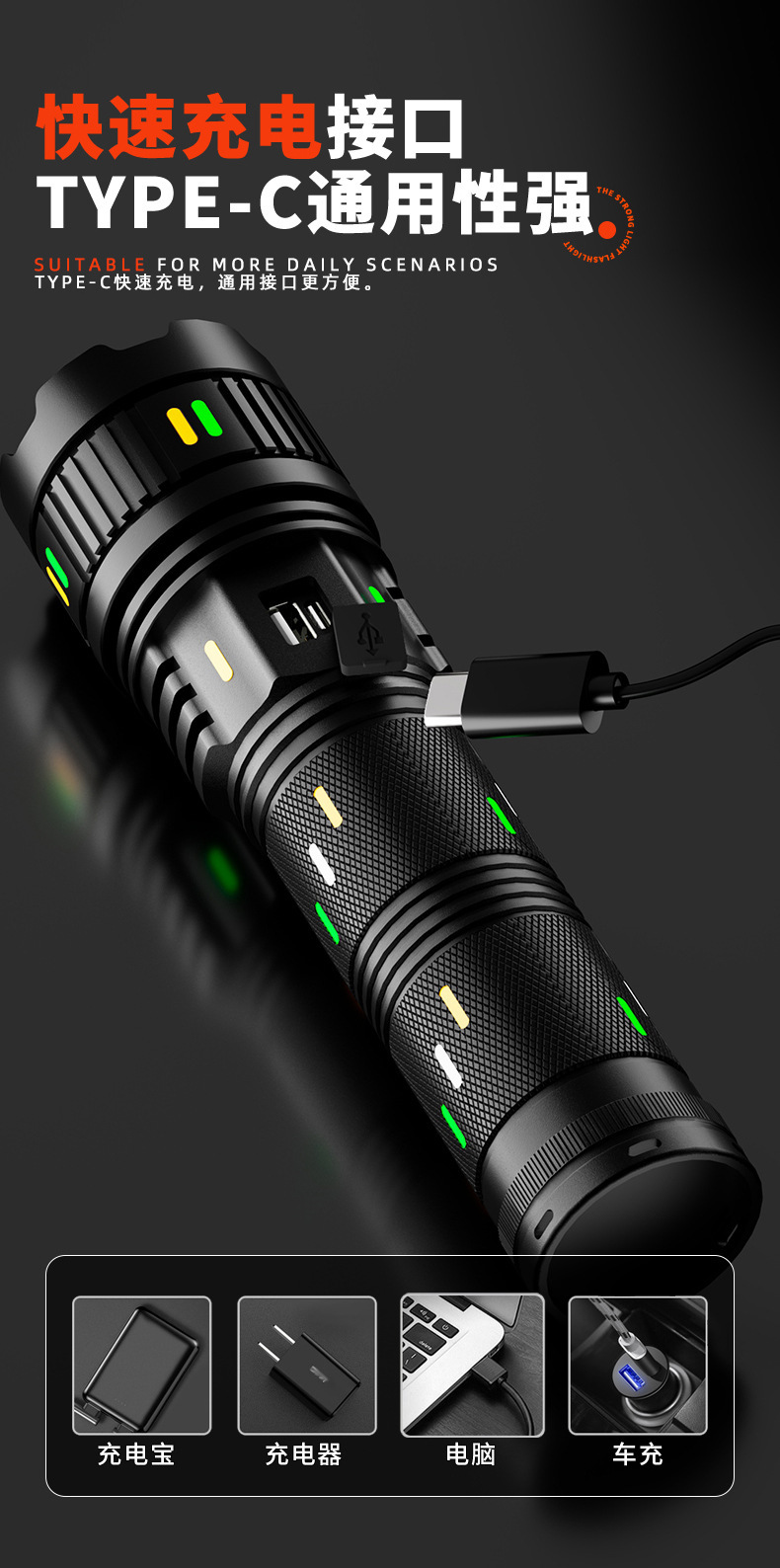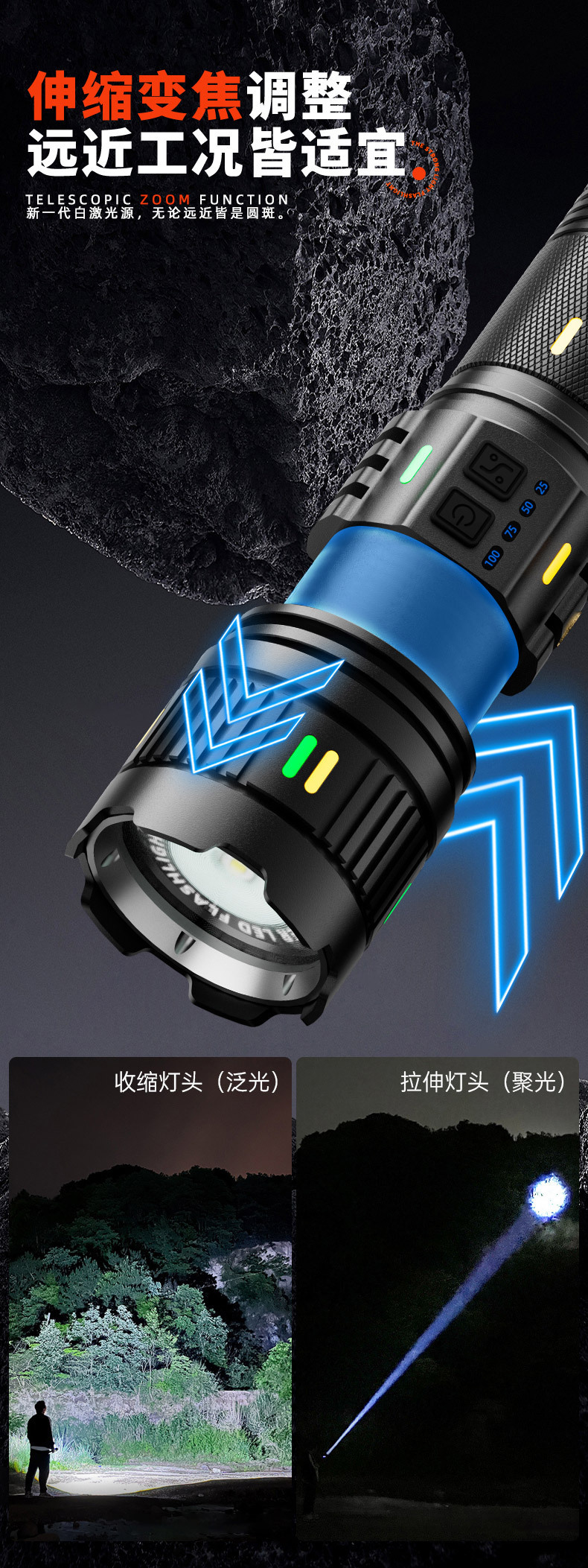 Senter paduan aluminium, cahaya kuat, terang, jarak jauh, multifungsi, tahan lama, luar ruangan, pengisian daya darurat tahan air G400
