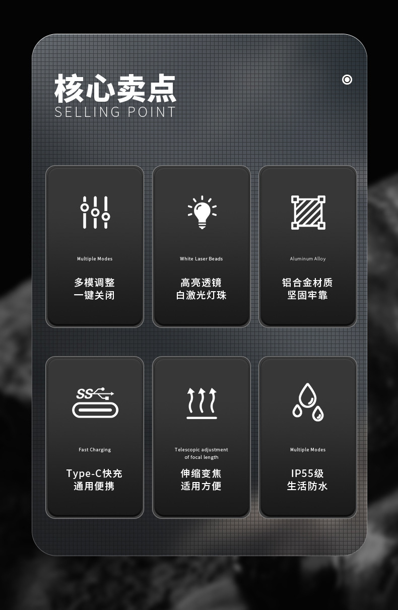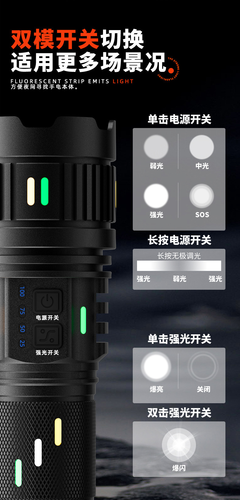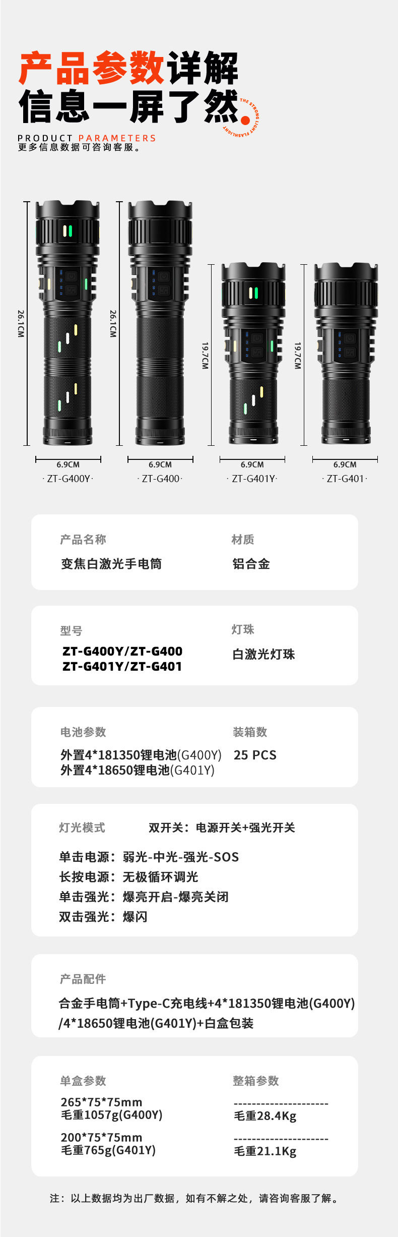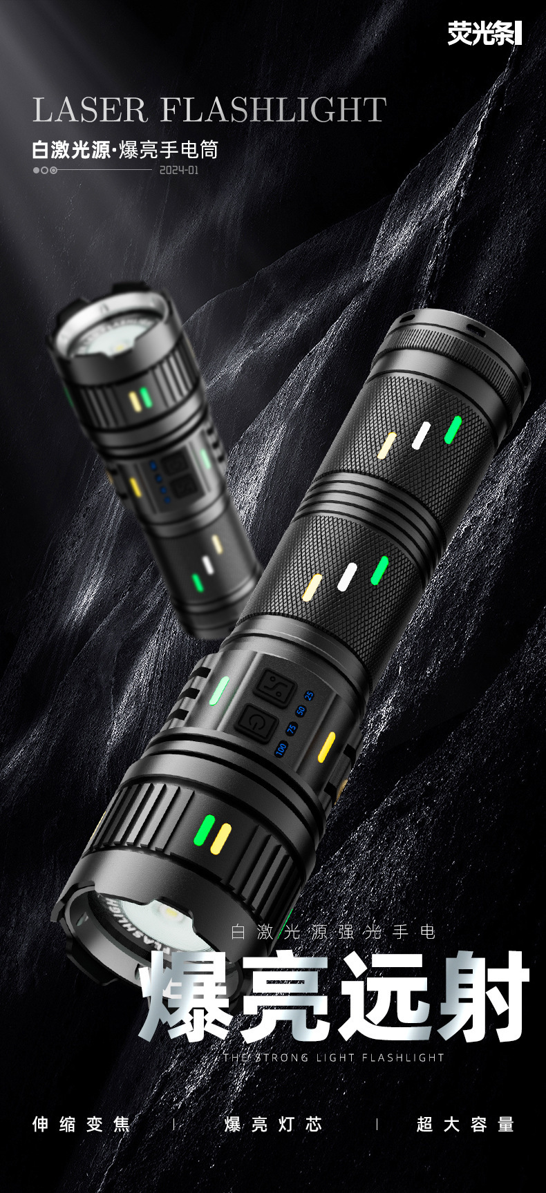 Senter paduan aluminium, cahaya kuat, terang, jarak jauh, multifungsi, tahan lama, luar ruangan, pengisian daya darurat tahan air G400
