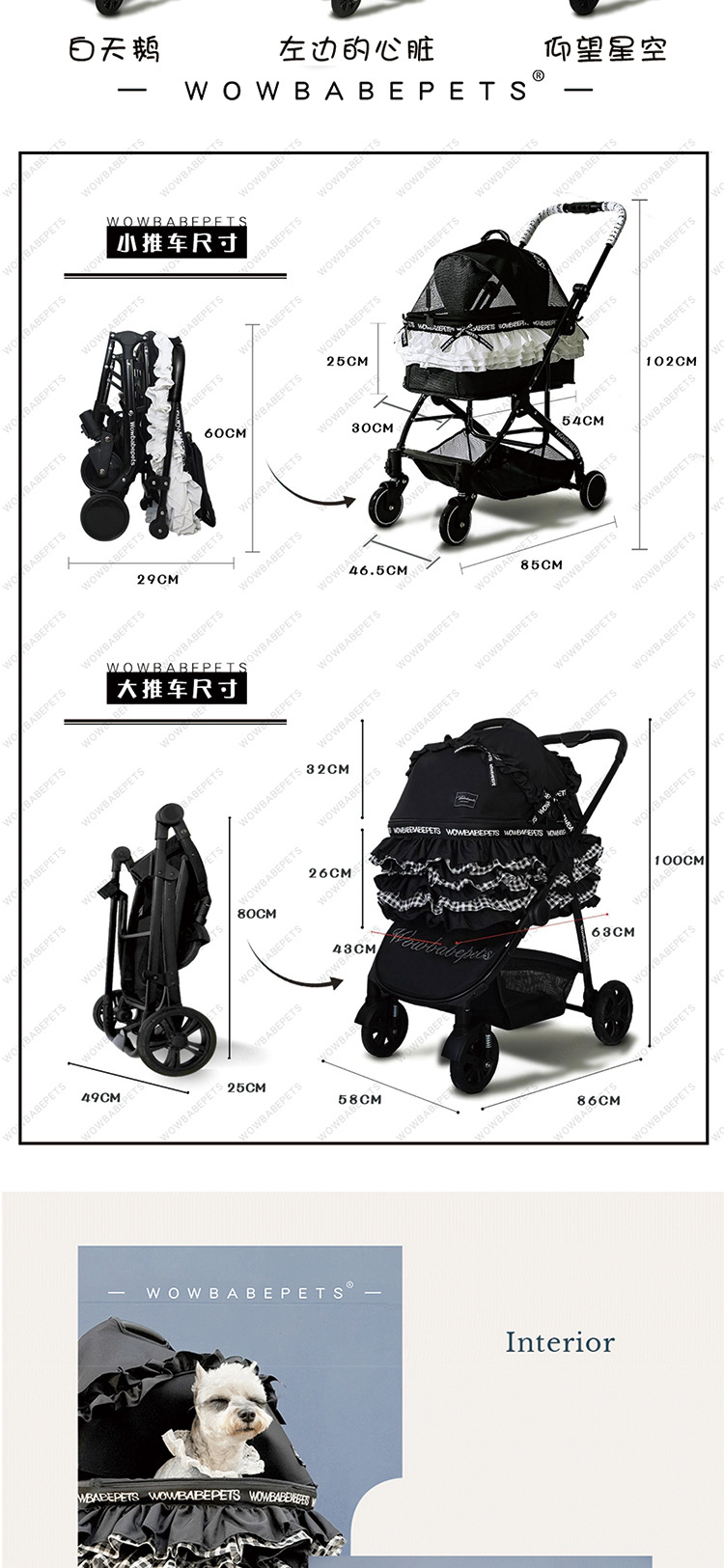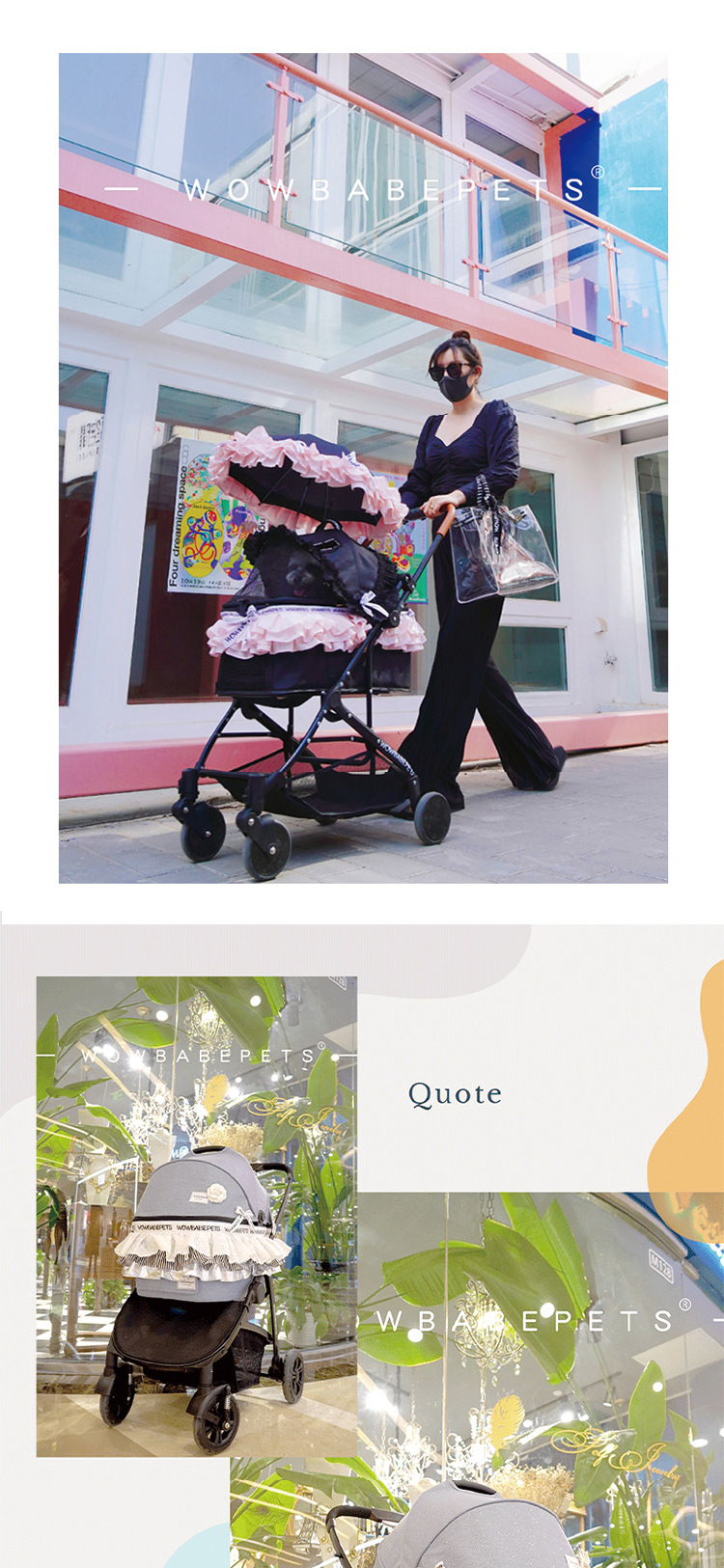 WOWBABEPETS kereta dorong anjing kucing, kereta dorong luar ruangan ringan dapat dilipat ukuran kecil dan sedang