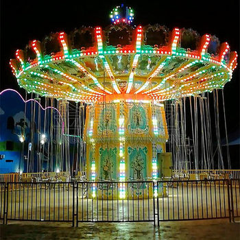 豪华飞椅又称飓风飞椅,运行时椅子会飞起来,主轴大圆盘带着座椅同时摇滚,令飞椅360度上下急速飞旋,如起伏在云端,如翻滚在浪尖。飞一般的感觉,便在这翱翔中一波又一波“侵袭”而来……非常吸引游客。游人在悬挂的座椅中随着回转盘倾斜回转和转体的相对转动,飞上旋下,生产摇头飞椅,好不惊险刺激,亲身一试方能体验它的无穷乐趣!