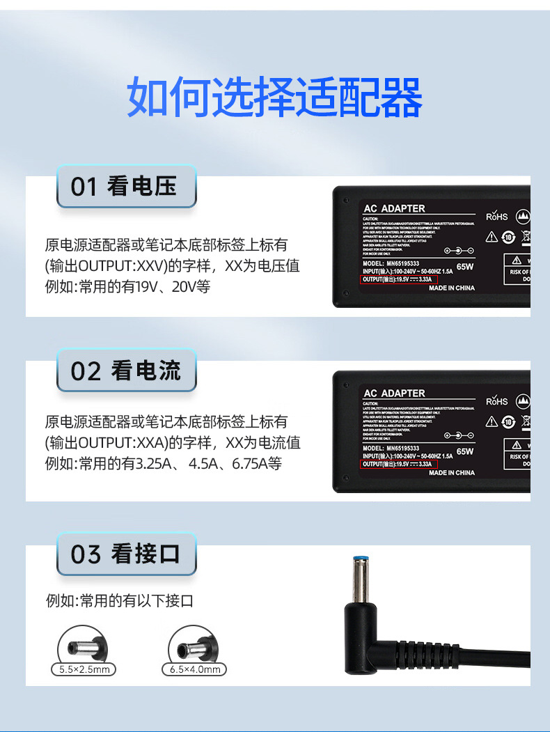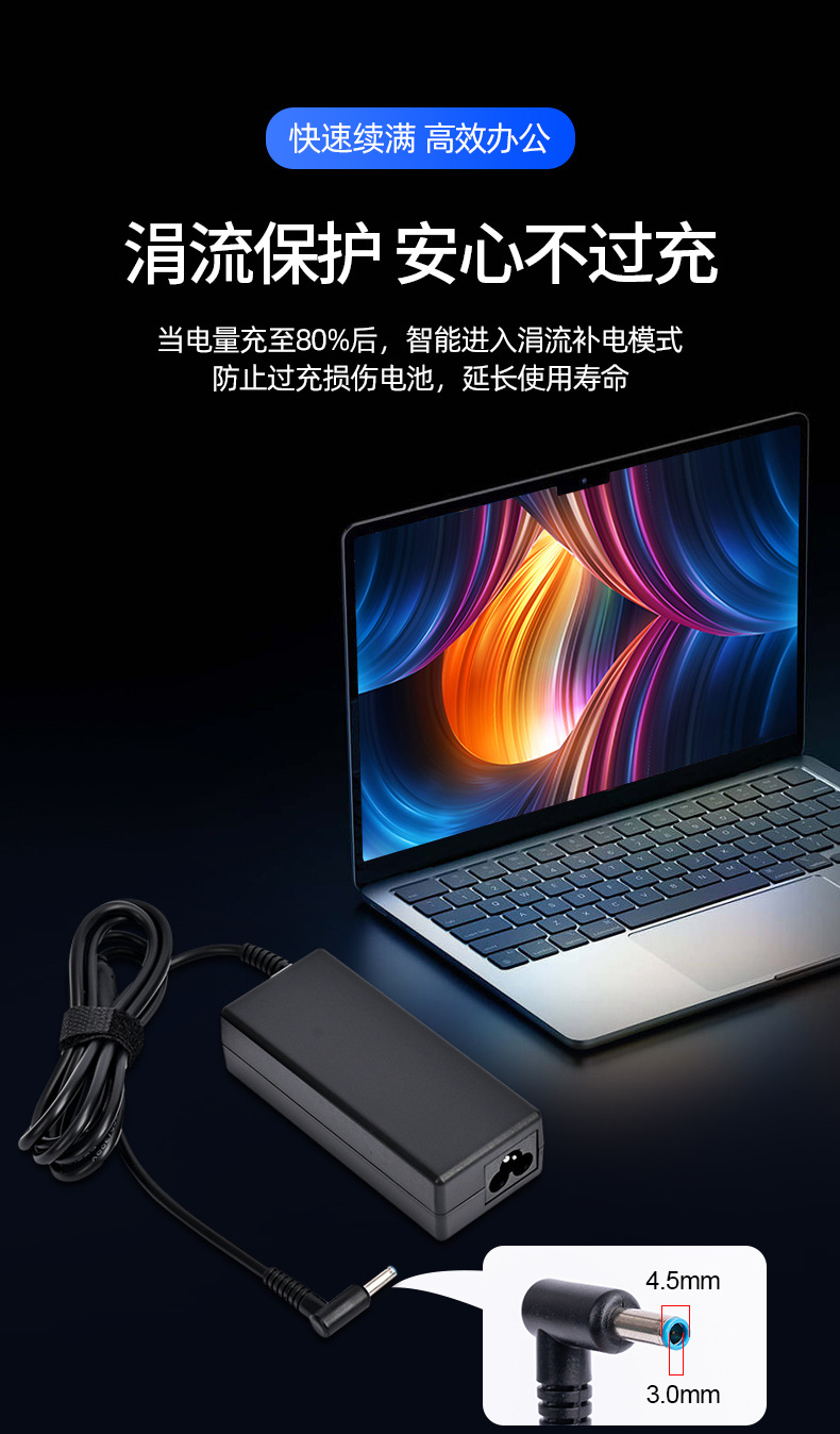 Berlaku untuk HP 65W adaptor daya laptop PIN 4.5*3.0 PIN port biru suhu rendah