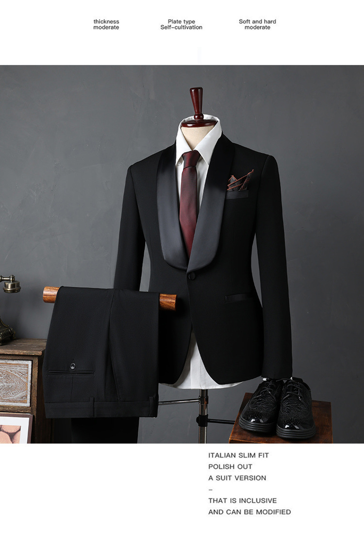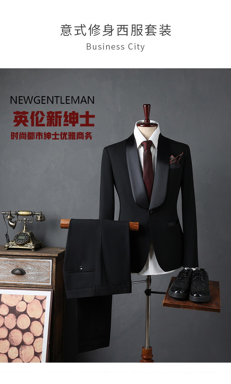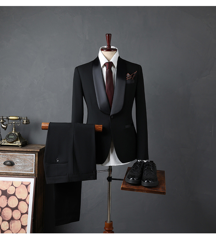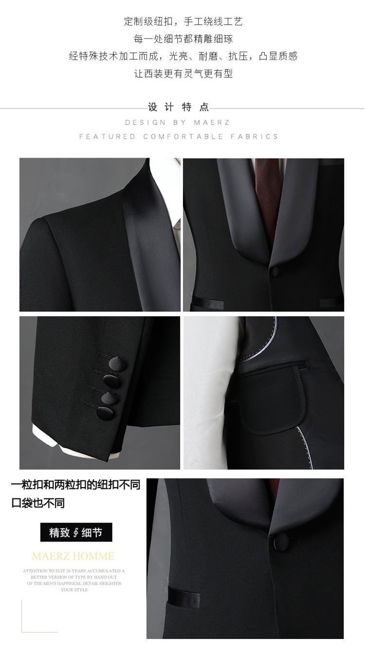 Setelan kelas atas kerah hijau setelan pernikahan pengantin pria slim-fit gaun pesta pernikahan tampan