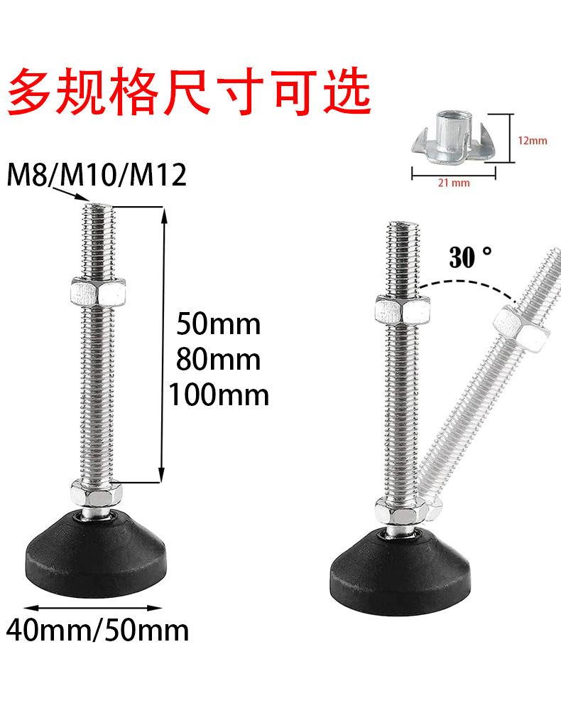Furnitur Universal nilon kaki dapat diatur, tinggi kaki meja perata kaki bersama kaki pendukung cangkir kaki M8M10M12