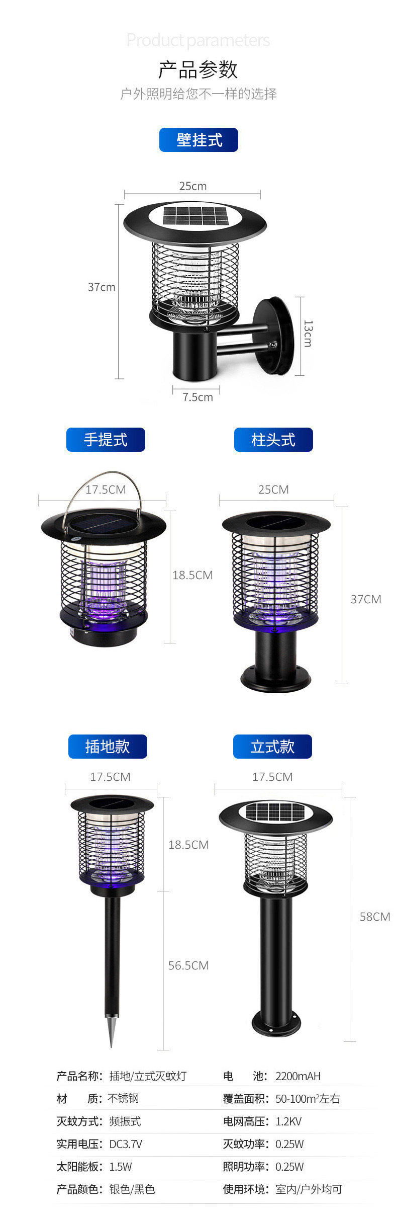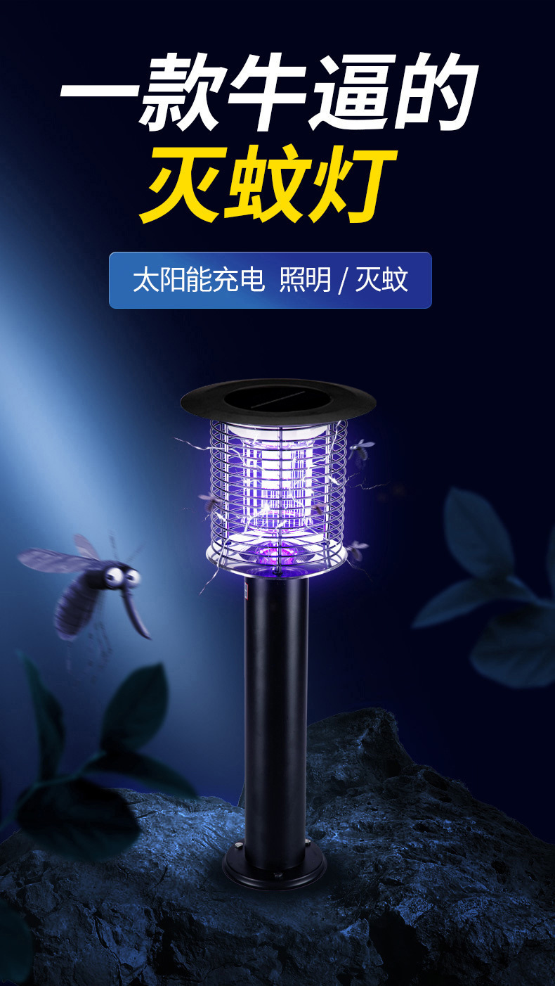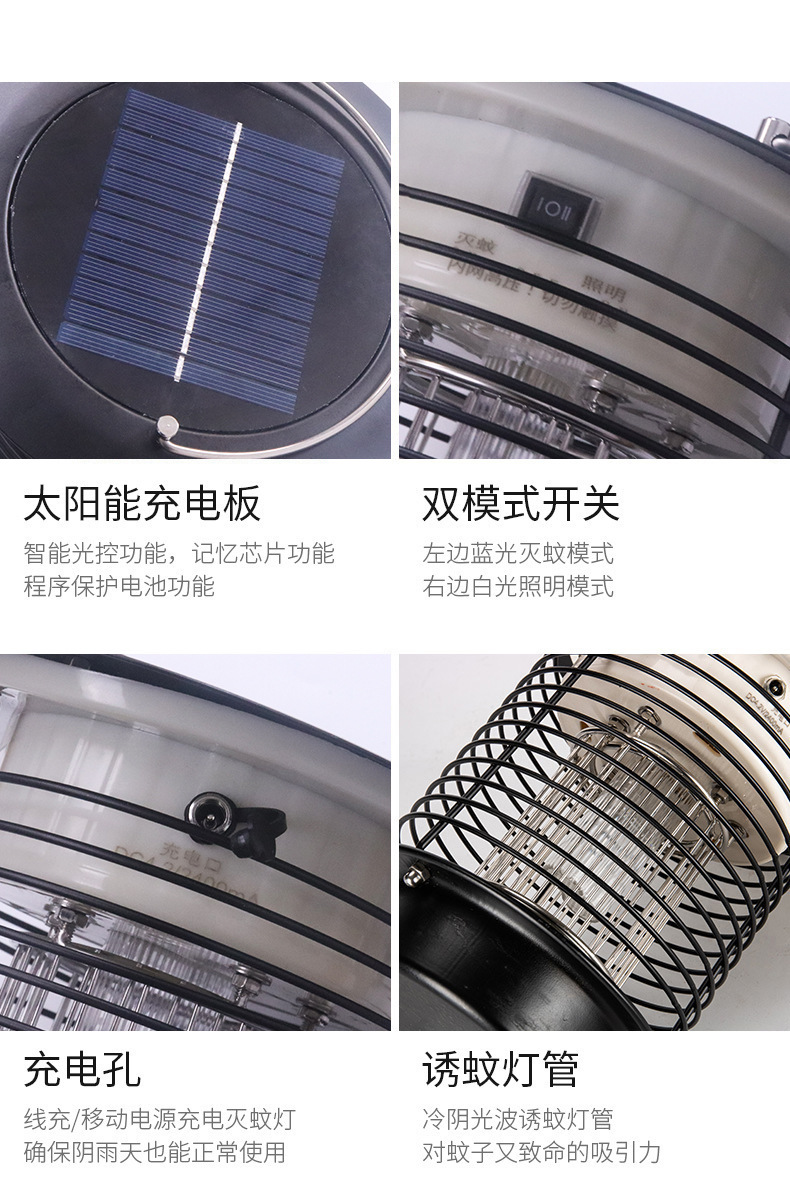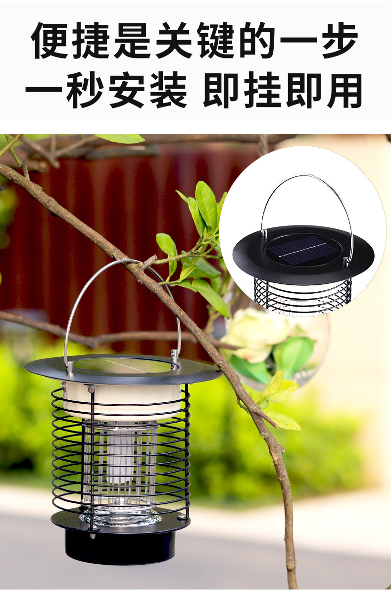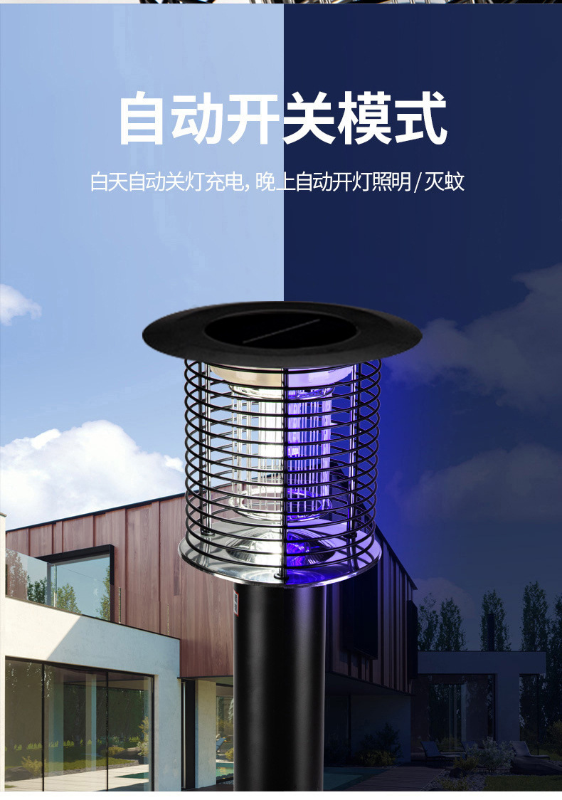Lampu Pembunuh Nyamuk Surya Baja Tahan Karat Penerangan Pembunuh Nyamuk Mode Ganda Lampu Surya Halaman Luar Ruangan Pembunuh Nyamuk Sengatan Listrik