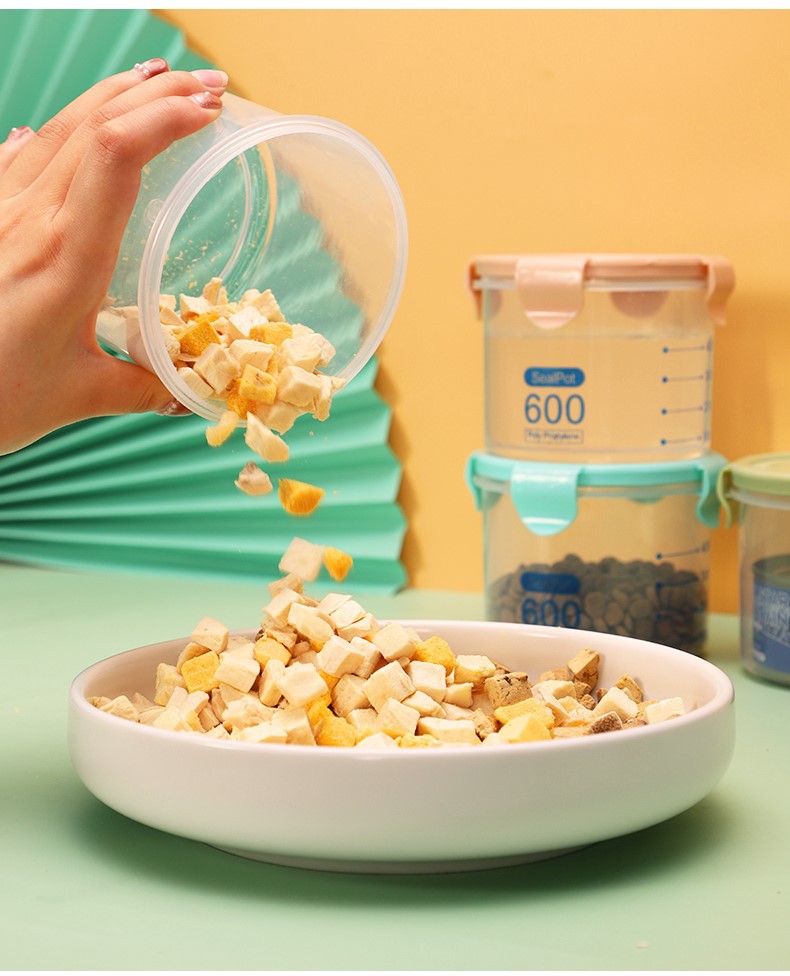 Makanan kucing makanan anjing keranjang penyimpan makanan kering beku penutup kedap air kedap panas portabel