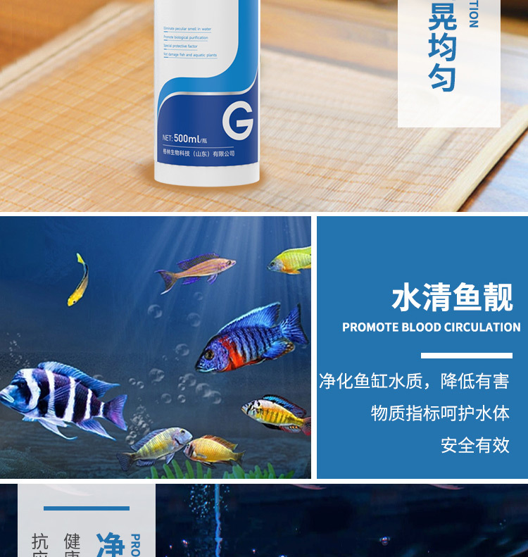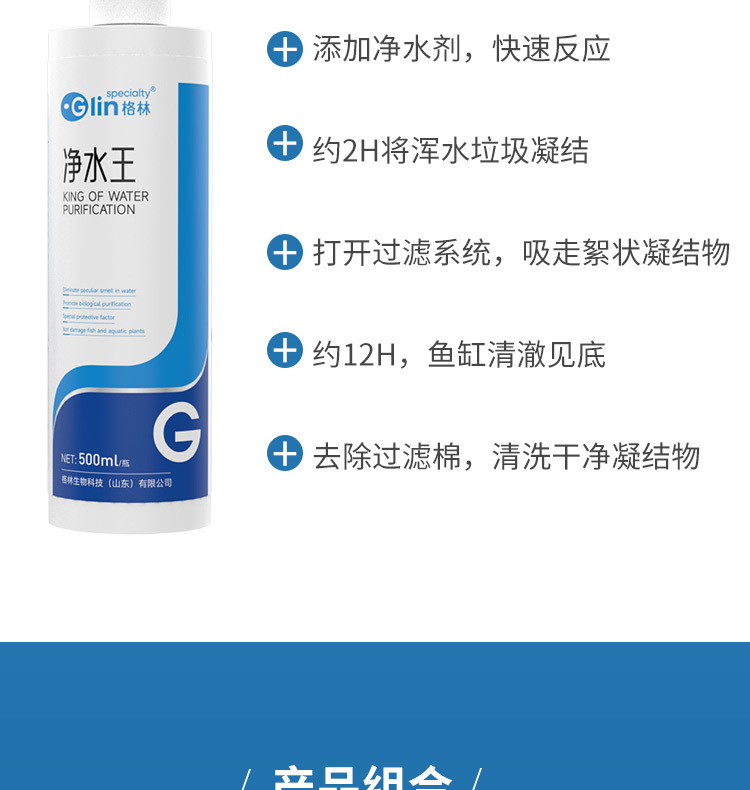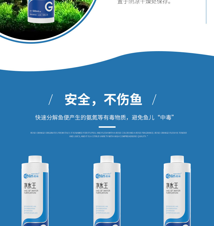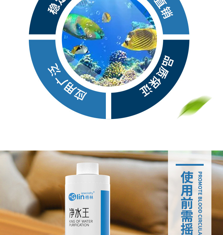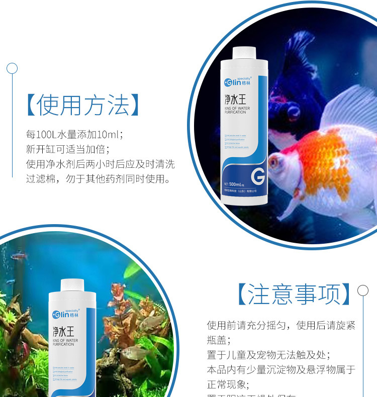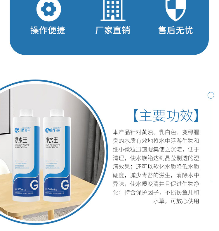 Pembersih air tangki ikan, agen bening kualitas air tidak merusak air ikan Liqing pembersih air yang dimurnikan 500ml Raja pemurni air