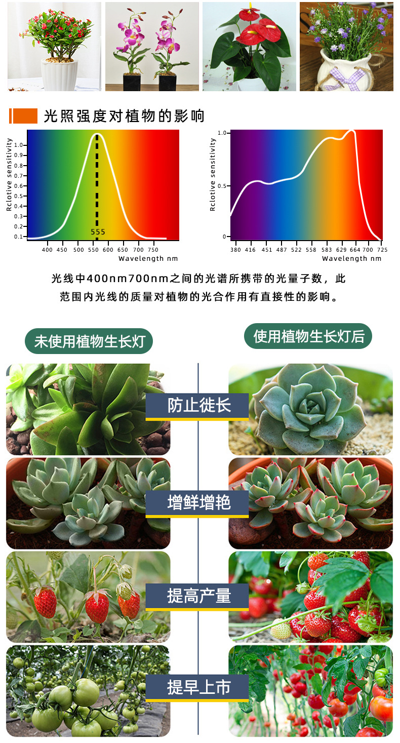 Lampu LED pertumbuhan tanaman spektrum penuh untuk budidaya buah naga dalam ruangan, aluminium berlapis plastik, lampu tambahan grosir