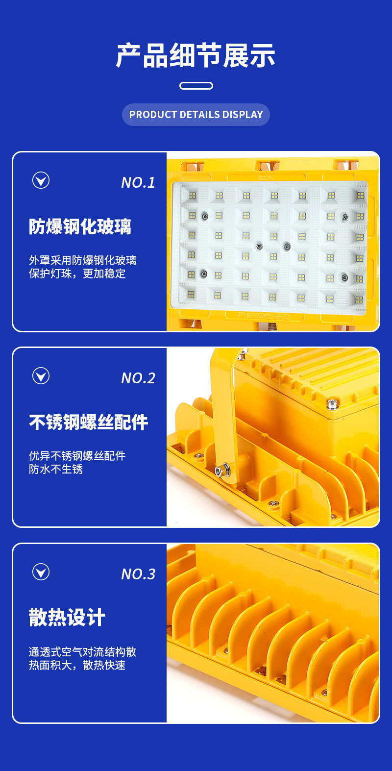 Produsen menyediakan lampu gudang cahaya tahan ledakan lampu stasiun bahan bakar WWWF spesifikasi lampu sorot banjir tahan ledakan lengkap