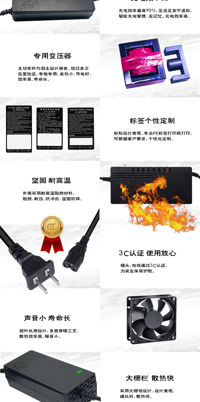 Pengisi daya mobil keseimbangan skuter 42V pengisi daya baterai lithium besi fosfat lithium mangan oksida produsen pengisi daya