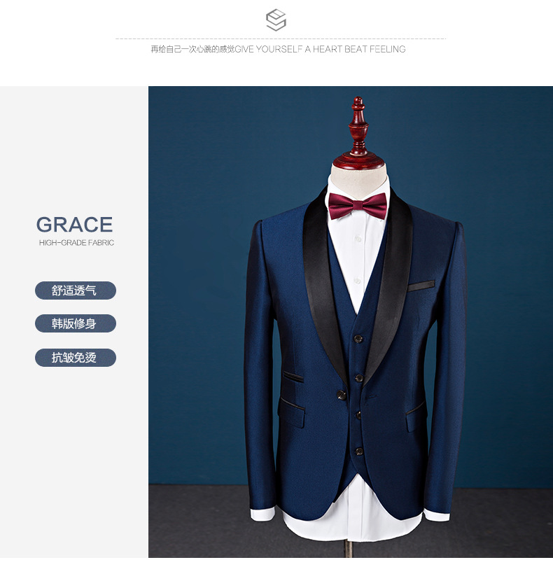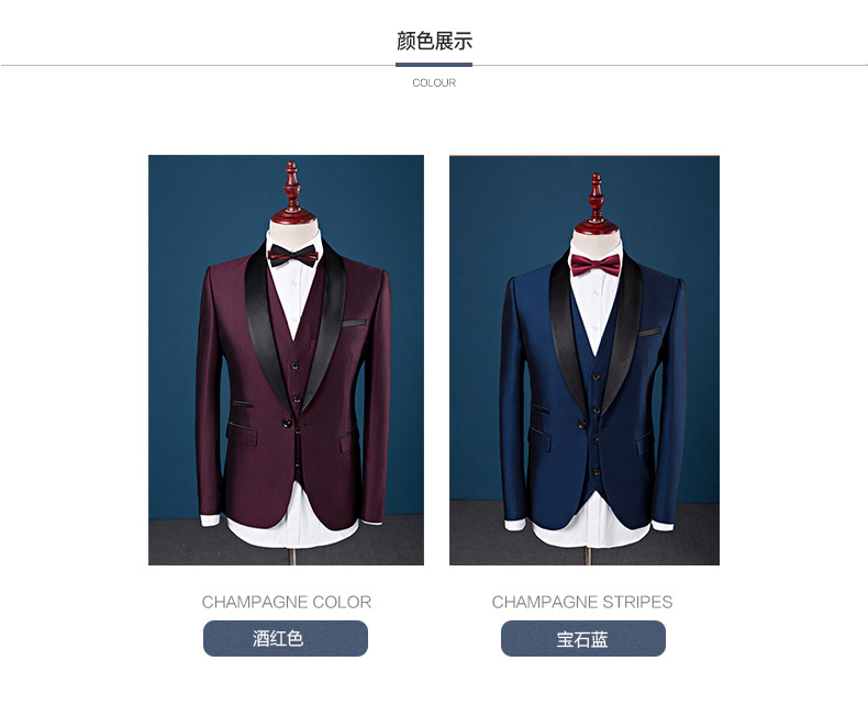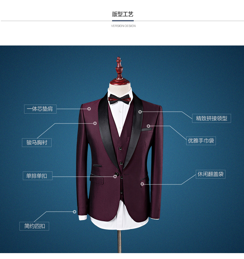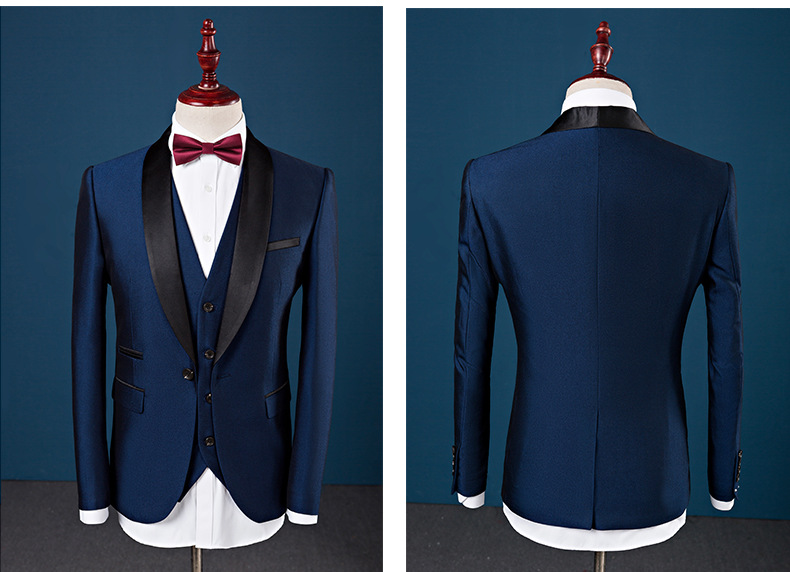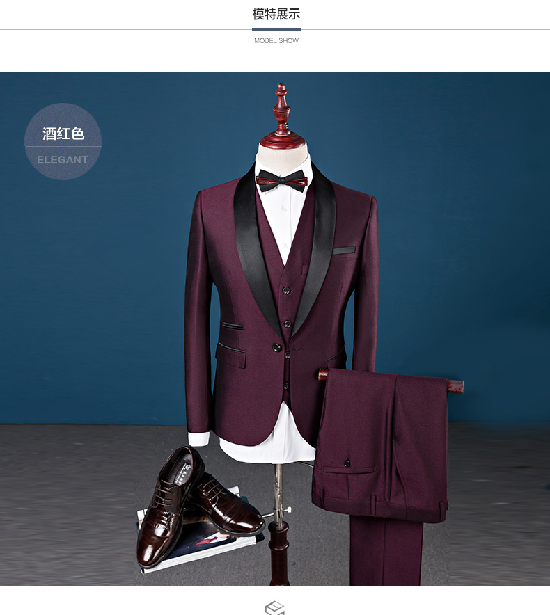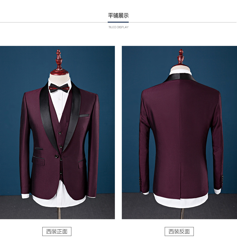 Setelan pakaian formal kerah polo pria baru Perdagangan Luar Negeri setelan 3 potong pakaian Signet pengantin pria pernikahan