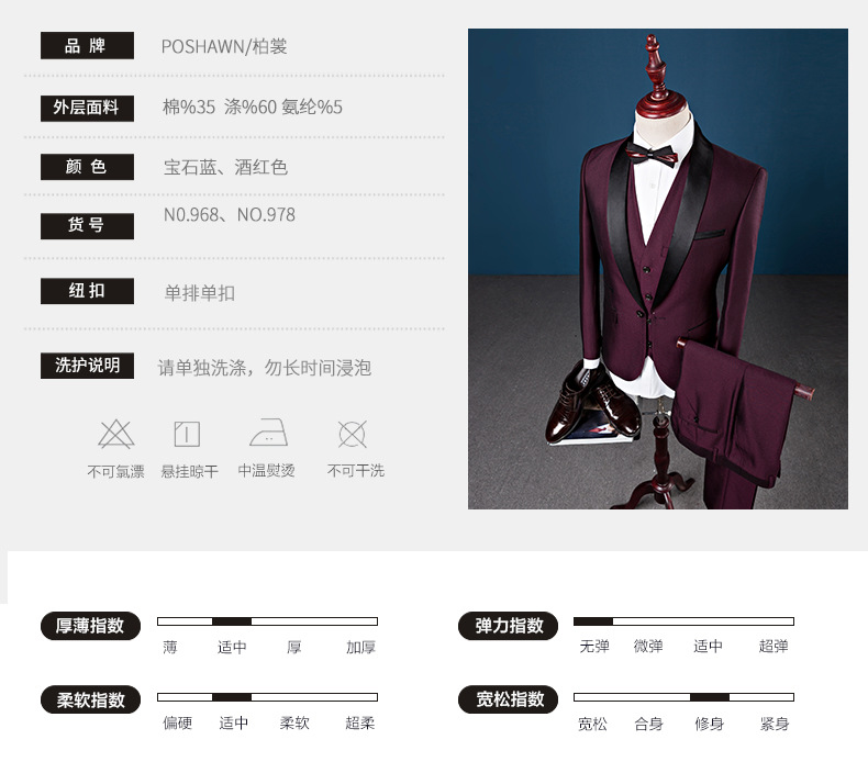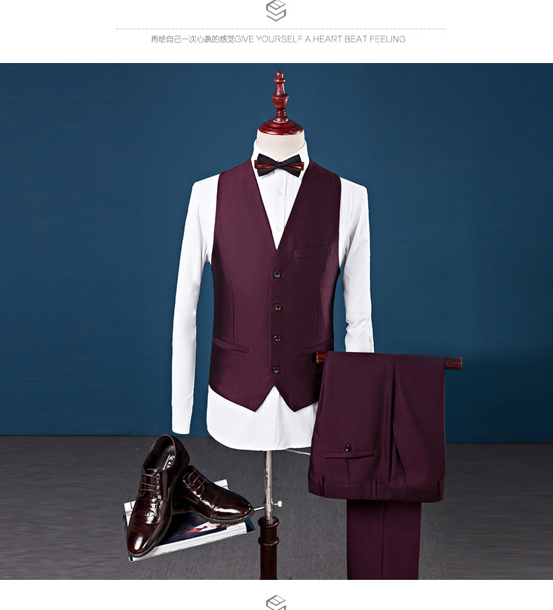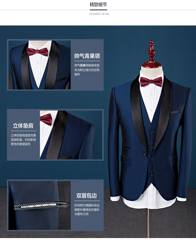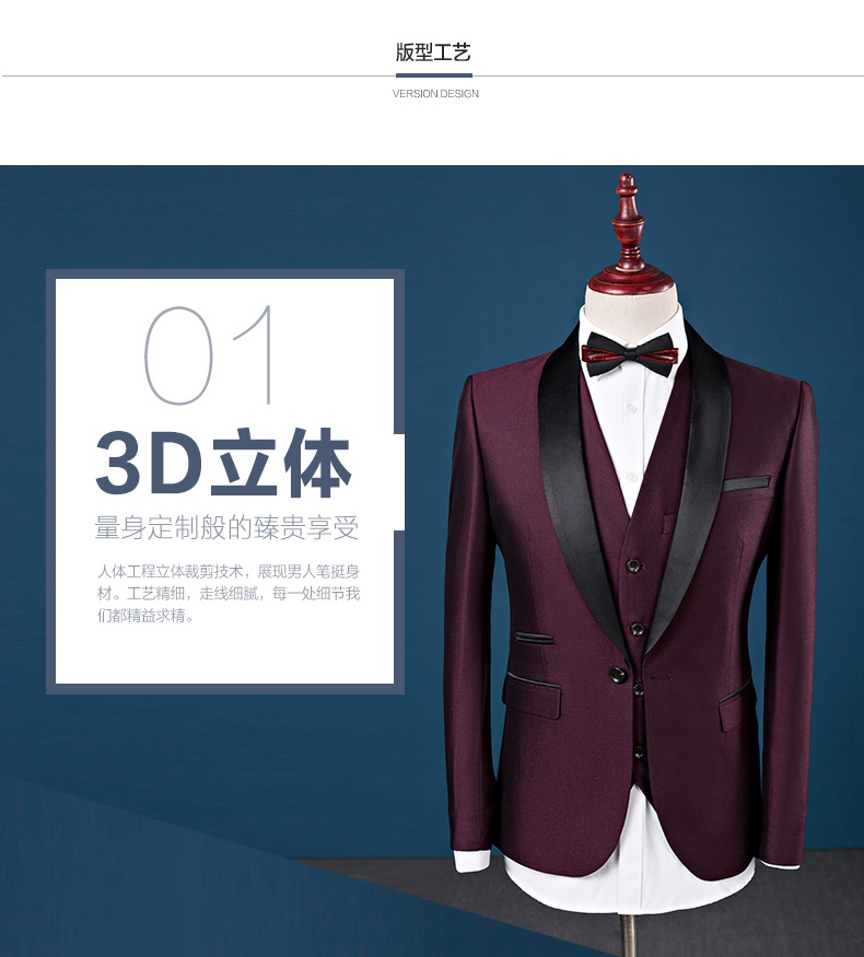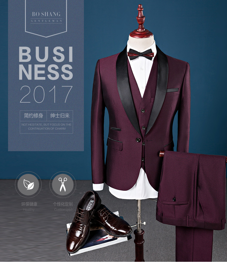 Setelan pakaian formal kerah polo pria baru Perdagangan Luar Negeri setelan 3 potong pakaian Signet pengantin pria pernikahan
